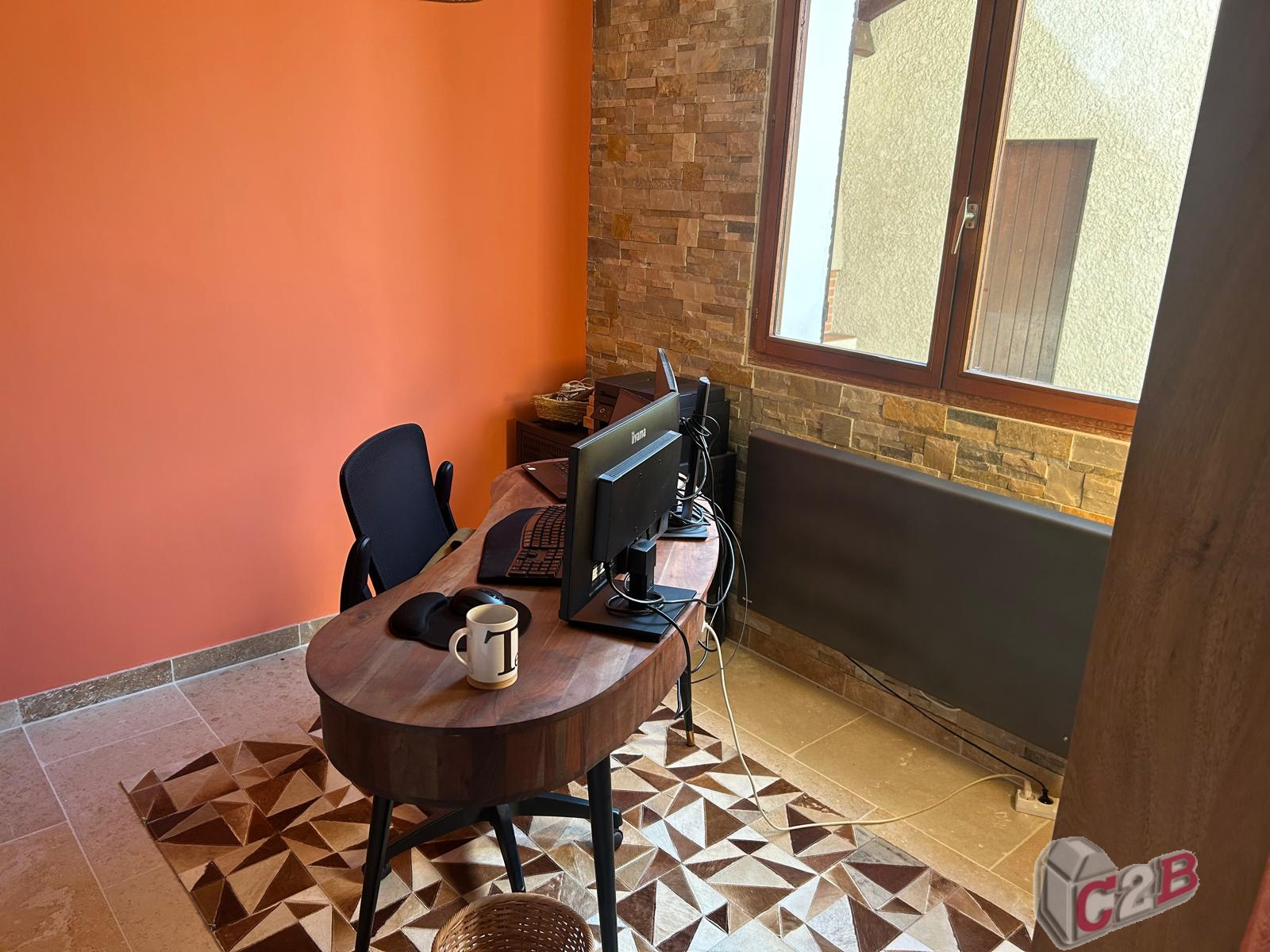 Une jolie cusine équipée Cellier attenant Une chambre d'amis avec coin bureau