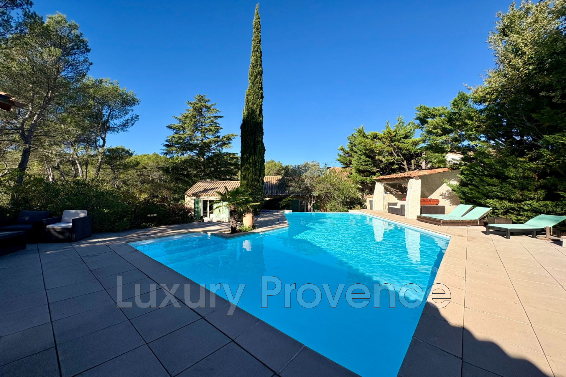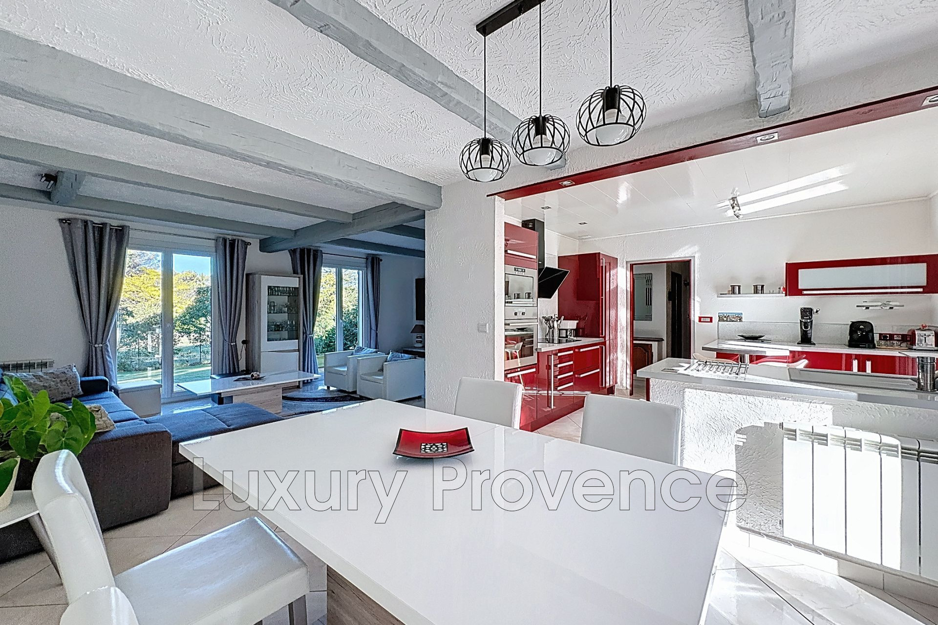 implantée sur un terrain de 1200m² au calme absolu. En effet, vous serez séduit par l'environnement paisible, entouré de verdure et à l'abri des regards. La maison se compose de plain-pied : d'une entrée avec dressing, d'un séjour / salle à manger / cuisine traversant est-ouest et ouvert sur les extérieurs, de 2 chambres, 2 bureaux, une salle de bain, un wc et un atelier. A l'étage, vous disposerez d'une suite parentale avec salle d'eau et balcon pour profiter de la belle vue dominante !Un garage et plusieurs places de stationnement viennent compléter cette propriété. À l'extérieur, vous profiterez d'une grande piscine à débordement, d'une cuisine d'été entièrement équipée et de plusieurs espaces verts. Cette maison mérite une légère remise aux goûts du jour mais vous bénéficiez de belles superficies et d'un environnement idéal. Si vous souhaitez plus d'information, n'hésitez pas à appeler Marion au 06 52 58 00 63. La présente annonce immobilière a été rédigée sous la responsabilité éditoriale de Marion BOUASSE, EI, agent commercial de la SAS Luxury Provence, immatriculée au RSAC d'Aix en Provence sous le numéro 918 822 495, titulaire de la carte de collaborateur pour le compte de la société Luxury Provence CPI13102024000000677 délivrée par la CCI de Marseille.