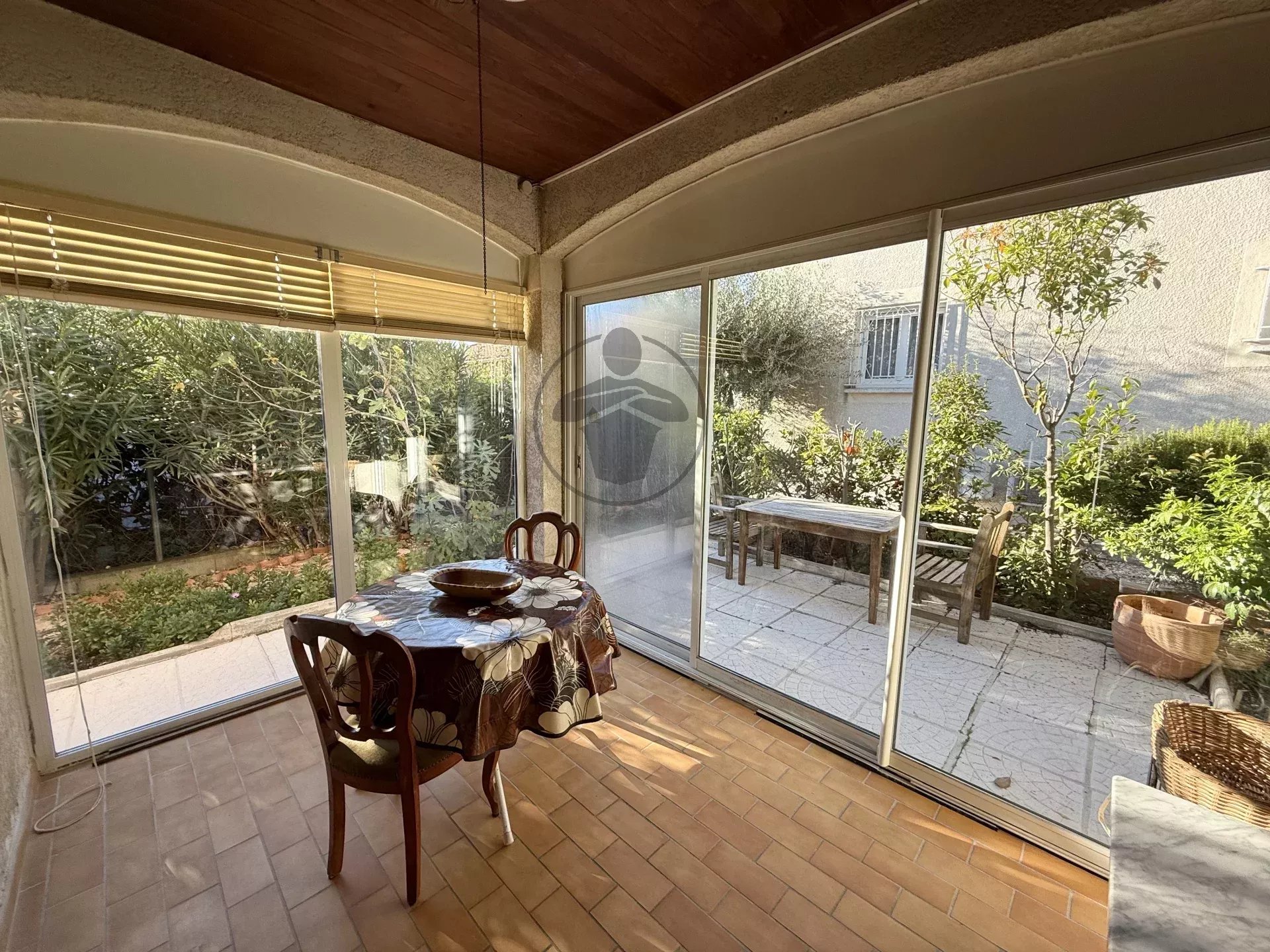 Le jardin propose plusieurs coins abrités. Un grand garage vient compléter ce bien rare dans le secteur.