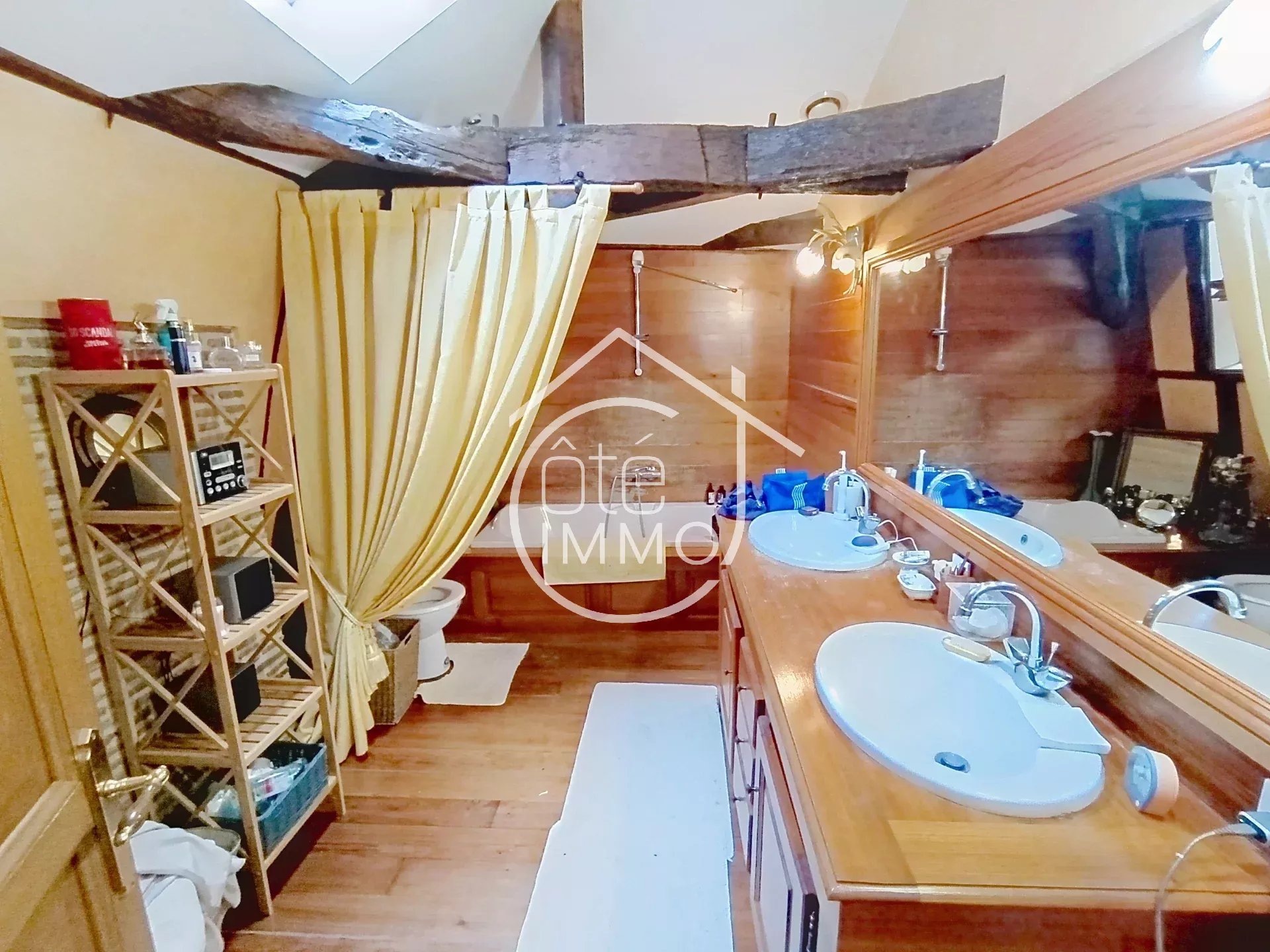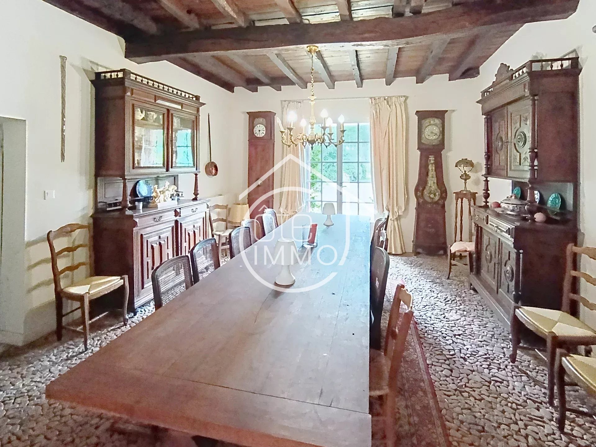 Côté Immo PRIGONRIEUX vous propose cette propriété de caractère avec gîte, piscine et dépendance aménagée Située à seulement 7 km de Bergerac, nichée dans un écrin de verdure de 7553m², au calme d'une impasse du village de Prigonrieux, cette superbe propriété allie le cachet de l’ancien, le confort moderne et une atmosphère chaleureuse. Elle est idéale pour une grande famille, une résidence secondaire ou un projet touristique. La maison principale, pleine d’authenticité, offre de beaux volumes baignés de lumière. Elle se compose de cinq chambres, dont deux suites parentales avec salle de bain ou salle d’eau privative (l’une située en rez-de-chaussée pour plus de praticité). Une troisième salle d’eau complète l’étage, offrant un agencement idéal pour accueillir famille et amis. Un gîte attenant de trois chambres, avec salle d’eau et salle de bain, permet d’accueillir vos invités ou de générer des revenus locatifs. Pensé pour les beaux jours, l’espace extérieur séduit par sa piscine exposée plein sud et sa vaste terrasse ensoleillée, devenant le cœur de vos journées d’été. Attenante, une grange aujourd’hui aménagée en salle de jeux et en bar offre de nombreuses possibilités selon vos envies. Un véritable lieu de vie en plein air, idéal pour prolonger les soirées entre amis. Authenticité de la pierre, générosité des espaces, prestations soignées et fort potentiel touristique font de cette propriété une opportunité unique au cœur du Périgord. Ne manquez pas de découvrir ce lieu rare où charme périgourdin rime avec qualité de vie. Points Techniques: - PAC AIR/AIR - Chaudière au Fioul - Poêle à granules - Simple et double vitrage - Puits - Tout à l'égout