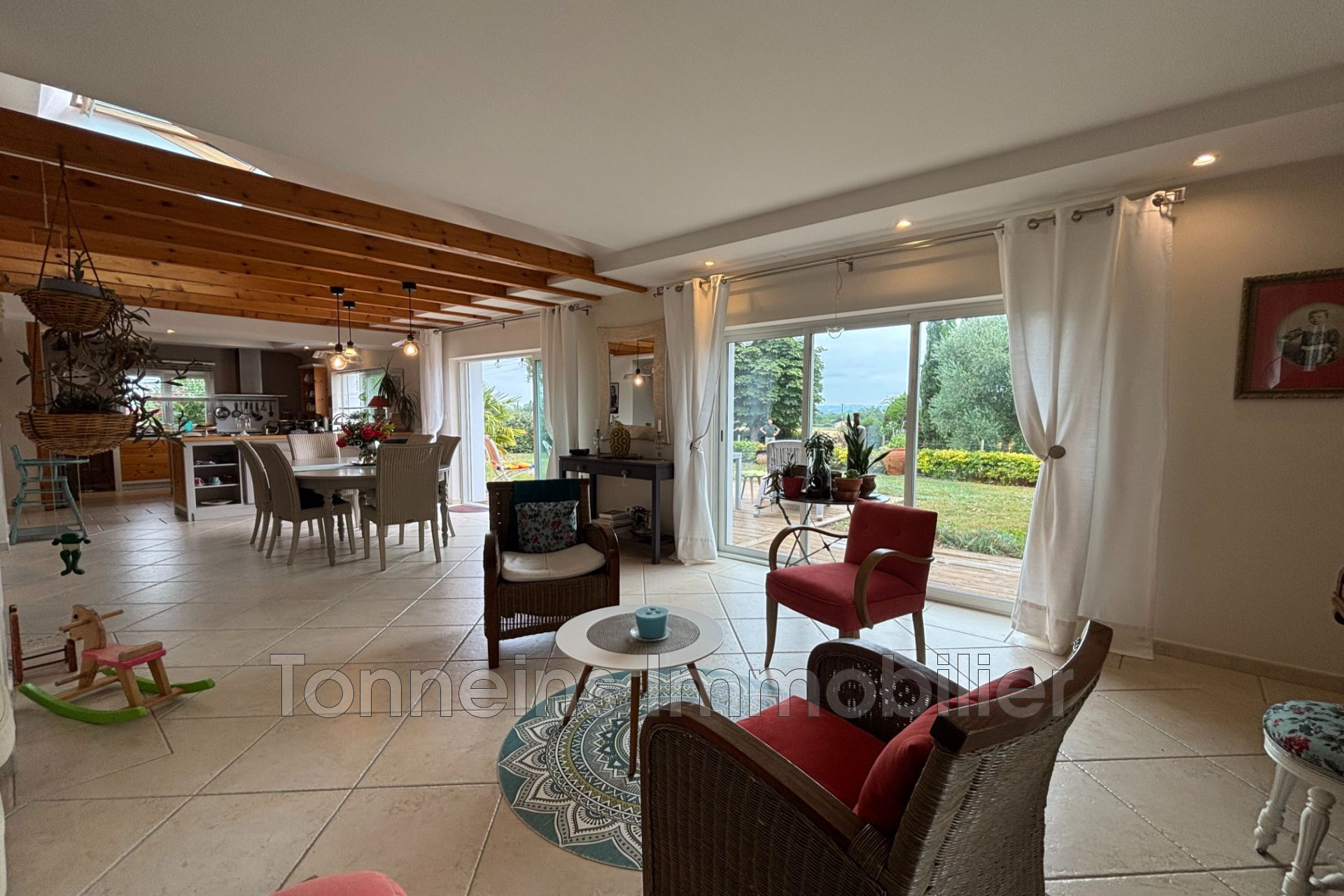 Dès l'entrée, vous serez charmé par une vaste pièce de vie baignée de lumière grâce à une grande baie vitrée, avec une cuisine ouverte sur salon/salle à manger + un salon d'hiver avec insert, et un accès direct à la terrasse parfaitement exposée.