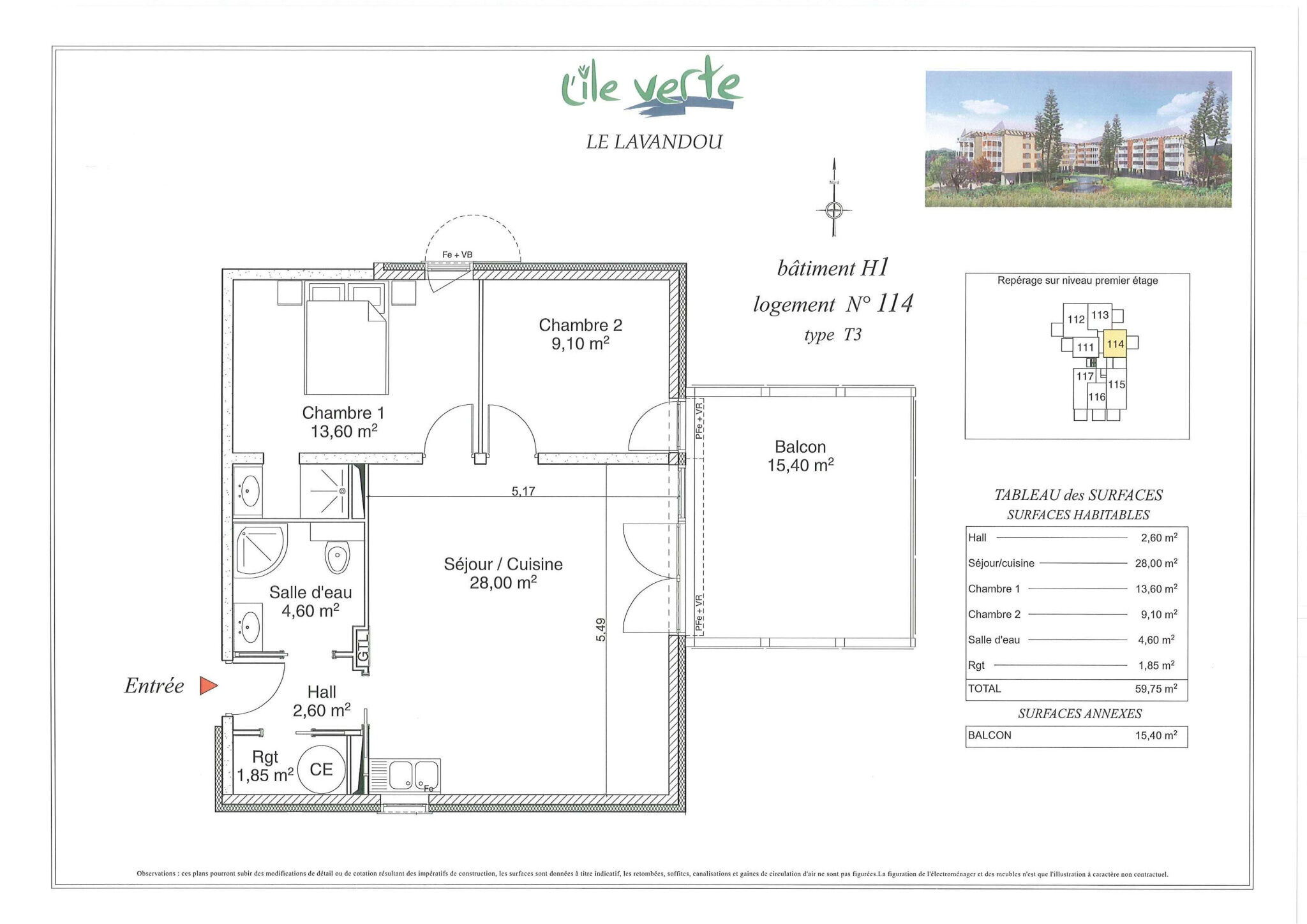 L'ILE VERTE résidence récente proche des commodités. Appartement T3 à louer à l'année vide, situé au 1er étage avec ascenseur. L'appartement de 59 m² se compose d'une entrée avec salle d'eau / WC, séjour avec cuisine semi-équipée ouvrant sur un balcon de 15.40 m², une chambre avec accès au balcon et une chambre avec salle d'eau. L'appartement est loué avec une place de parking privative dans la résidence.1.Informations LOI ALUR : Charges : 38 ¤ /mois.Règlement des charges : provisionnel.Honoraires locataire : 657 ¤ TTC.Dont honoraires état des lieux : 179 ¤.Dépôt de garantie : 967 ¤.Surface (arrondie) : 59 m². (gedeon_91036_32110703)