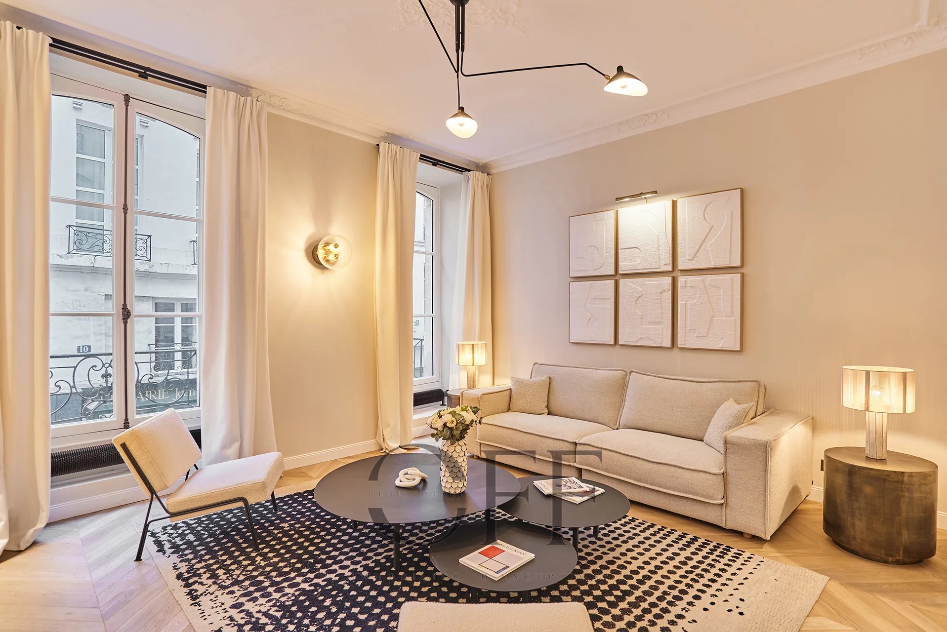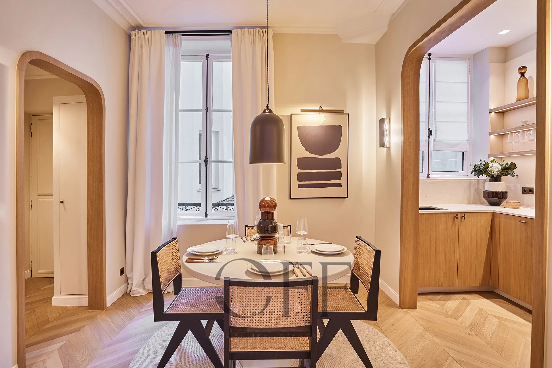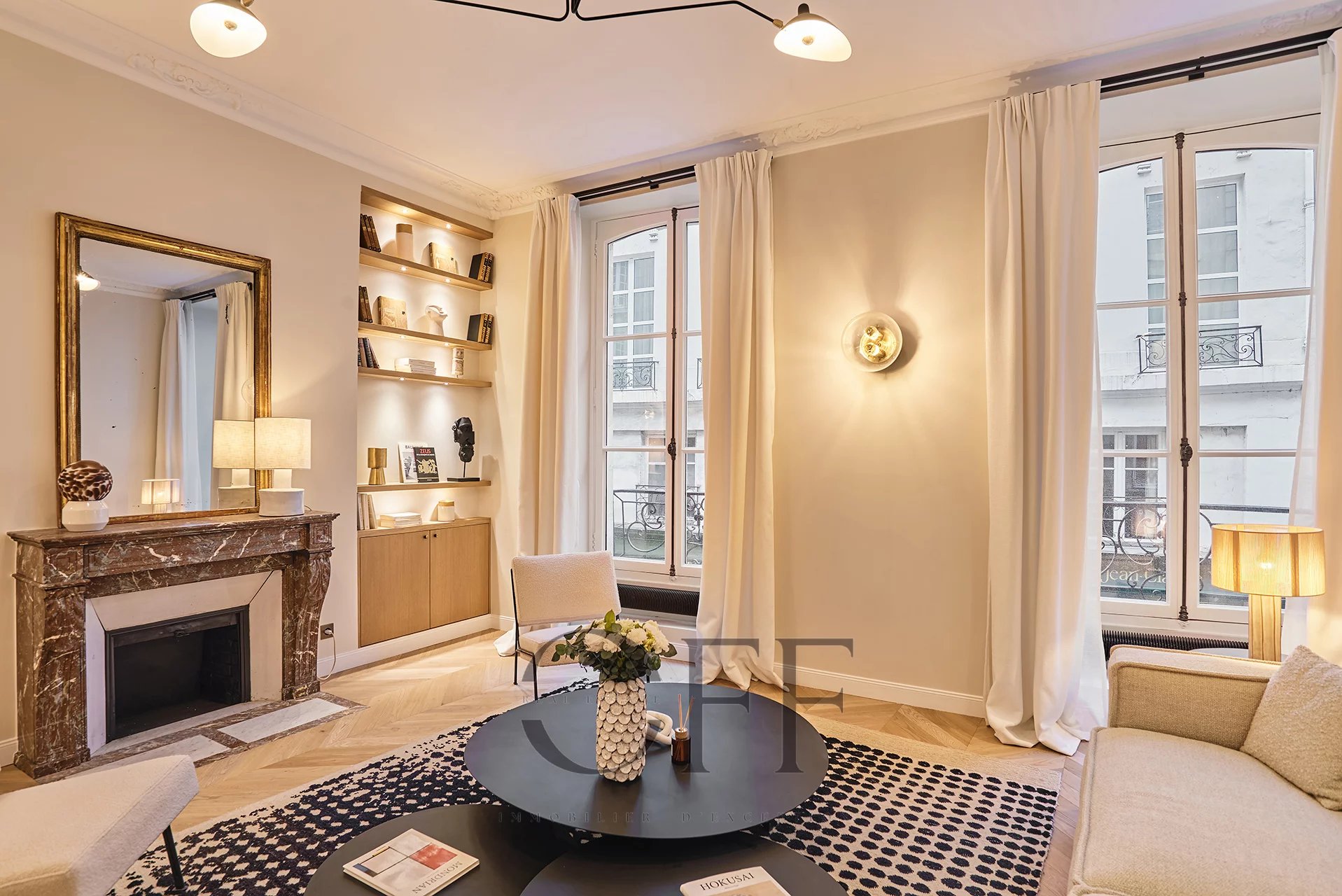 Au 1ᵉʳ étage d’un bel immeuble ancien, charmant appartement entièrement rénové par architecte en 2025. Il se compose d’une salle à manger avec cuisine équipée, d’un salon lumineux, et d’une chambre avec rangements sur mesure. Une salle d’eau contemporaine et un WC séparé complètent ce bien. Emplacement recherché, rénovation de qualité et élégance des finitions font de cet appartement une adresse idéale au cœur de Saint-Germain-des-Prés.