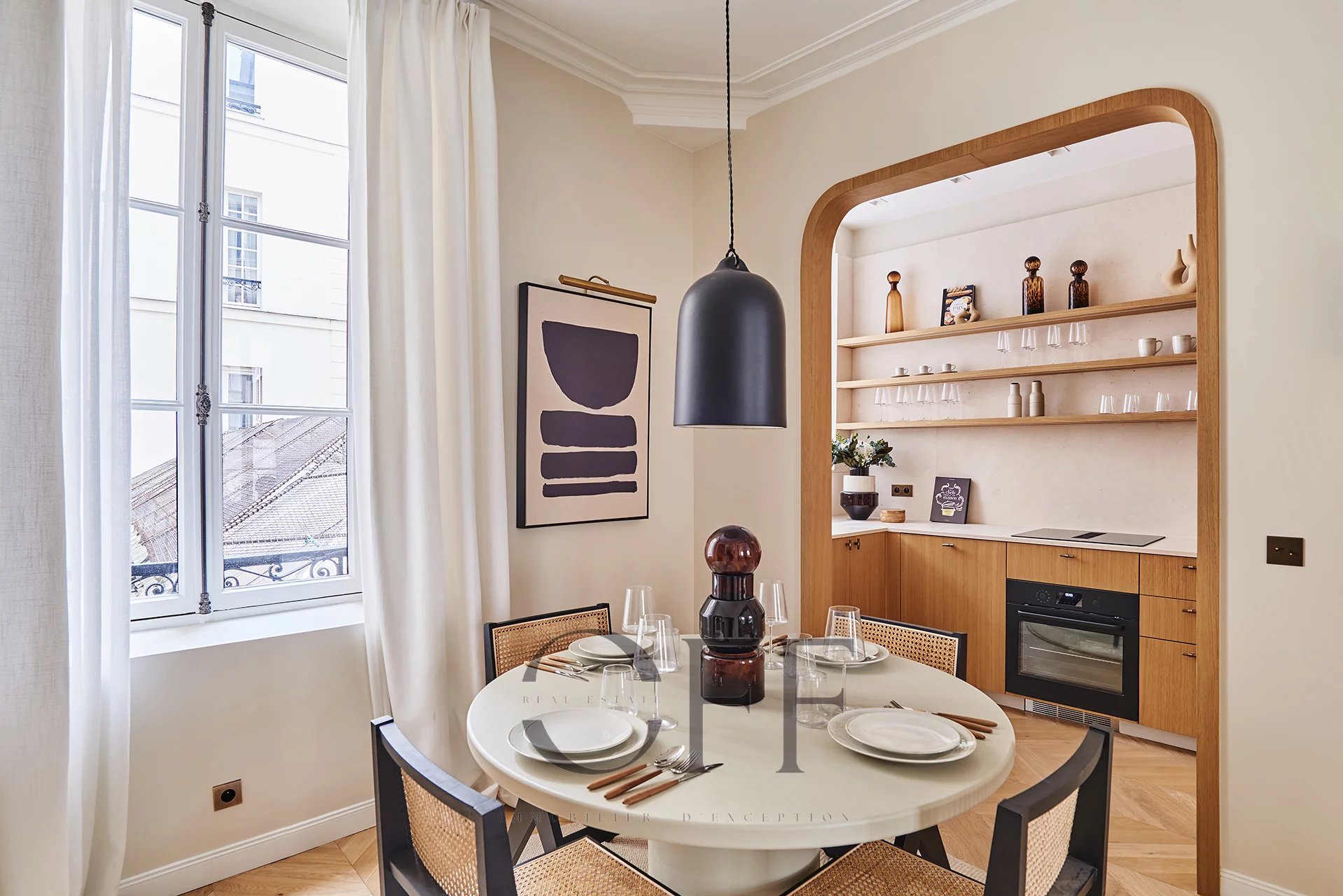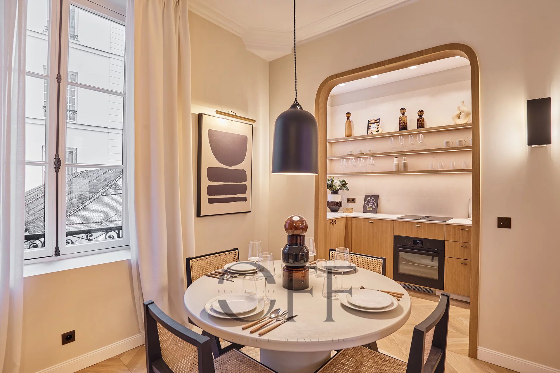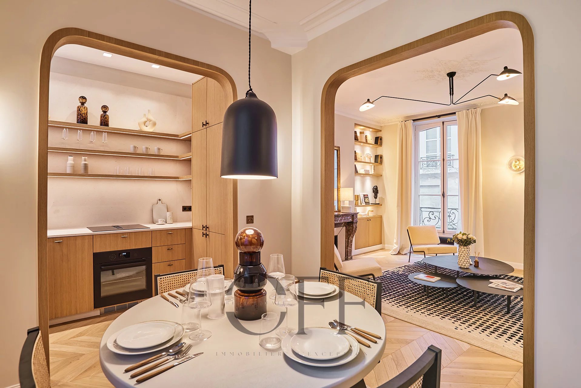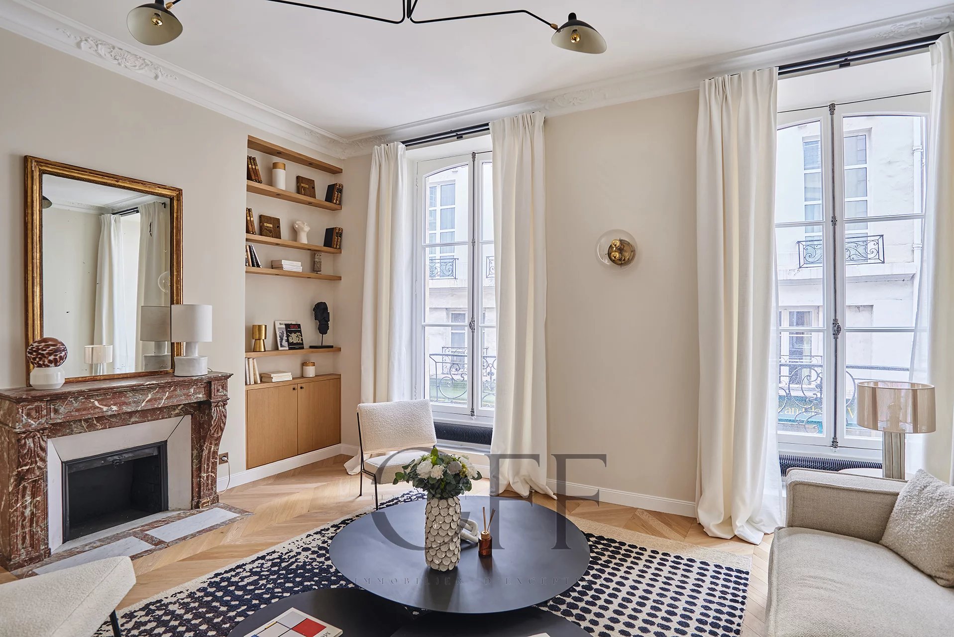Au 1ᵉʳ étage d’un bel immeuble ancien, charmant appartement entièrement rénové par architecte en 2025. Il se compose d’une salle à manger avec cuisine équipée, d’un salon lumineux, et d’une chambre avec rangements sur mesure. Une salle d’eau contemporaine et un WC séparé complètent ce bien. Emplacement recherché, rénovation de qualité et élégance des finitions font de cet appartement une adresse idéale au cœur de Saint-Germain-des-Prés.