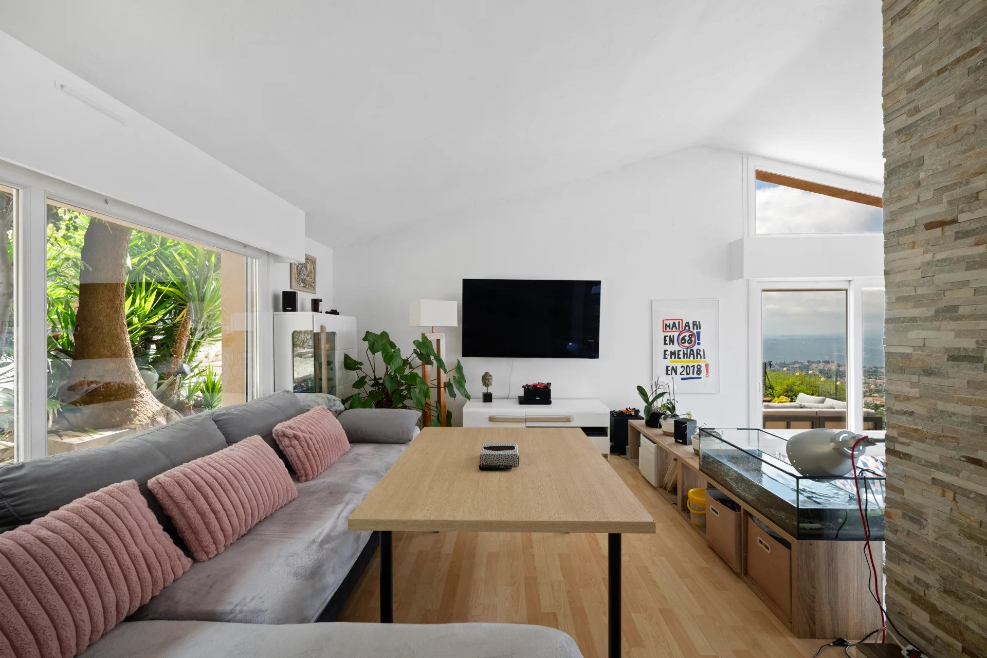 ***SOUS COMPROMIS*** Au sein d’un lotissement fermé très recherché, cette maison de plus de 200 m² séduit par ses volumes généreux, son vaste séjour baigné de lumière et sa vue panoramique mer et collines, sans aucun vis-à-vis. Idéale pour une vie de famille, elle offre 4 chambres, un bureau, une piscine à l’abri des regards, ainsi qu’un grand garage fermé. Un bien rare, au calme absolu, à découvrir sans attendre !