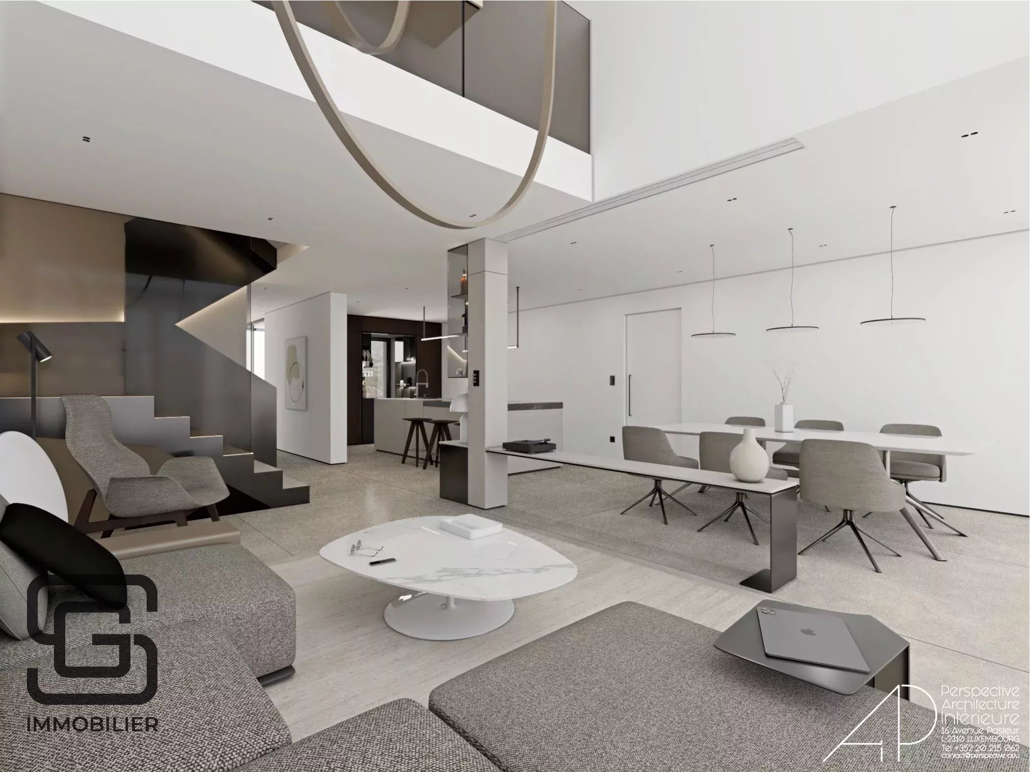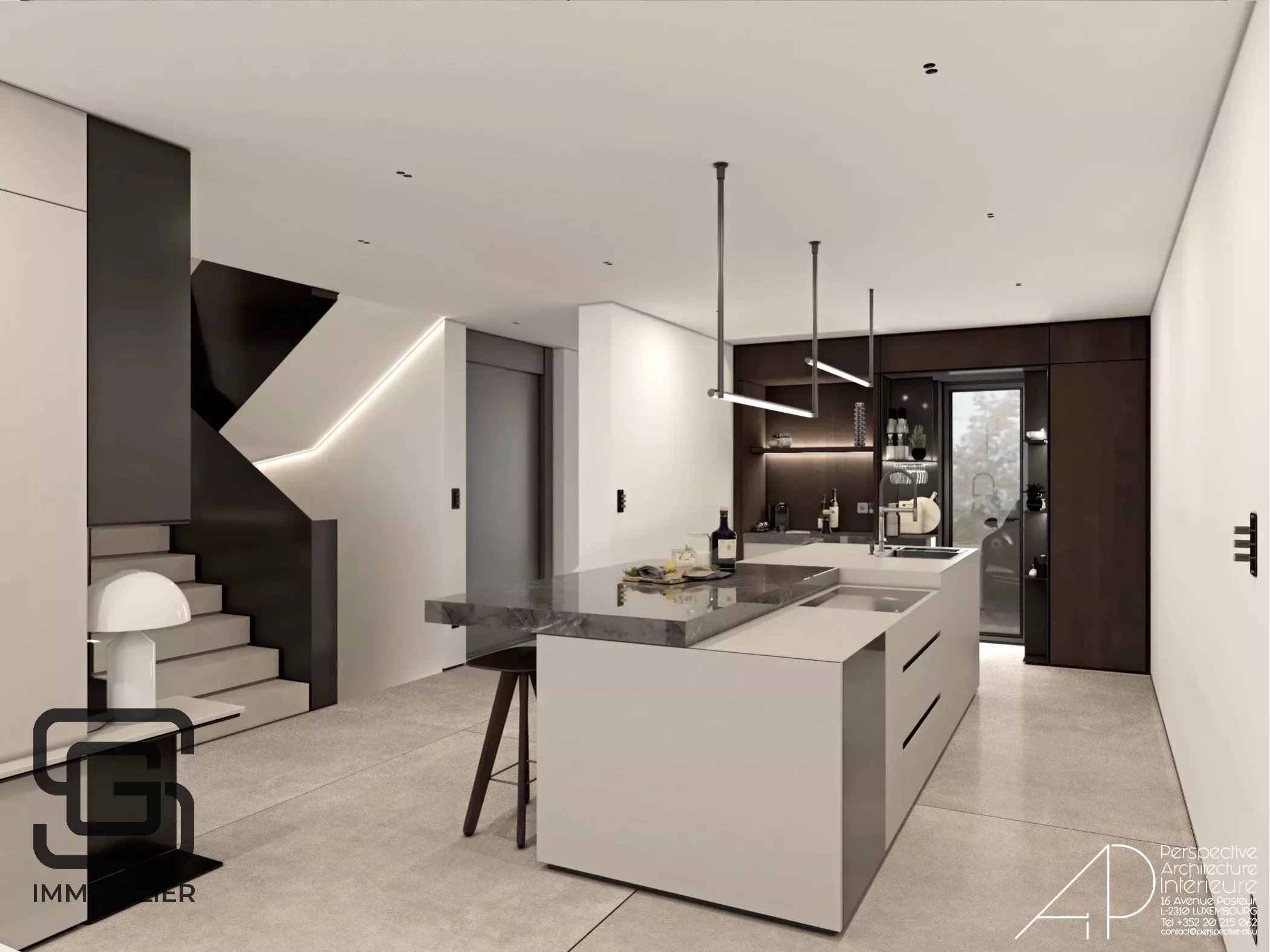 - d'un coin cuisine ouvert, prêt à accueillir une cuisine haut de gamme avec îlot central (au choix de l’acquéreur, non inclus dans le prix)