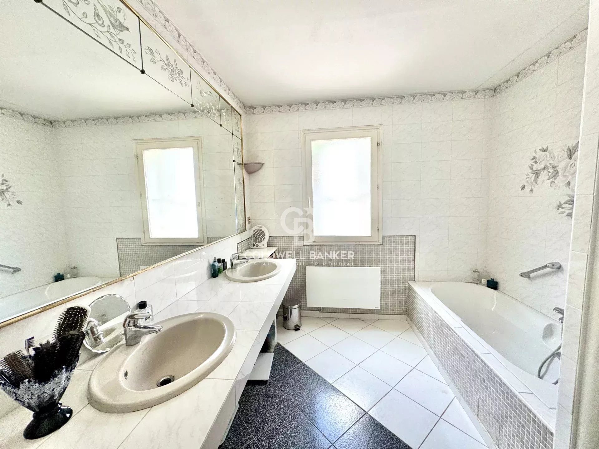 La villa est entièrement climatisée, équipée de menuiseries récentes et offre de belles perspectives d’aménagement extérieur, notamment la possibilité de créer une piscine.