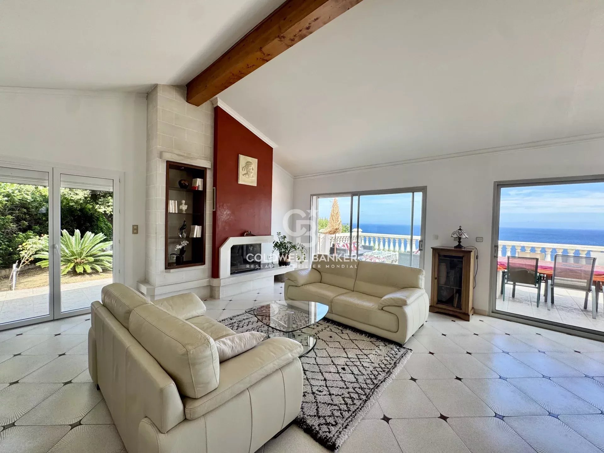 • Un vaste séjour avec cheminée ouvrant sur de larges terrasses face à la mer