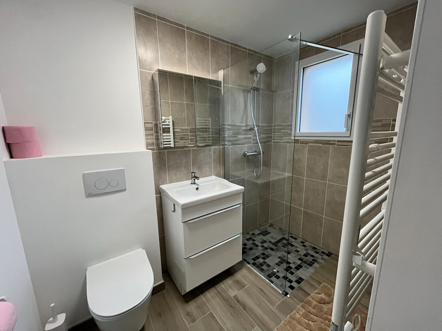 SAINTE-MARGUERITE à deux pas de la plage, maison neuve livrée en septembre 2025, normes RT 2012, comprenant au Rdc : entrée, cuisine ouverte aménagée équipée sur séjour donnant sur terrasse, buanderie, wc avec lave-mains et douche. A l'étage : deux chambres avec placards, salle d'eau, WC avec lave mains. 2 parkings extérieurs avec prise pour véhicule électrique. Internet compris. Pas de charges. Louée MEUBLEE à l'année. Copropriété de 4 lots.