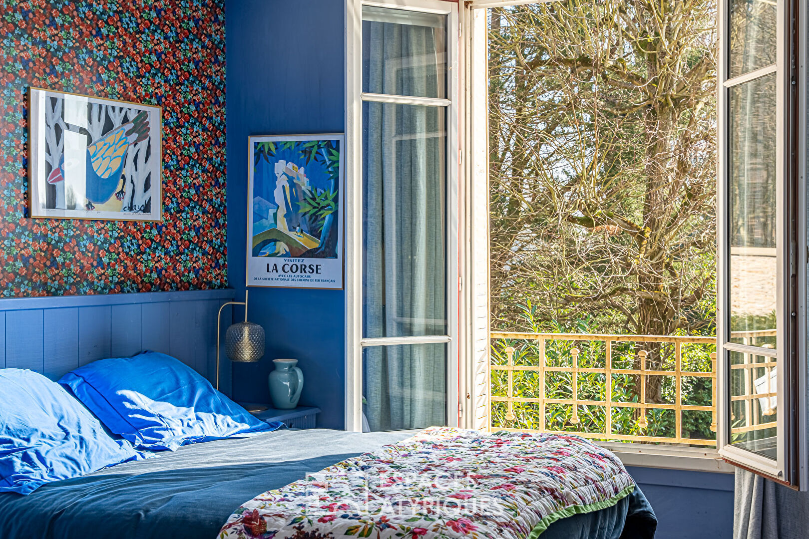 Idéalement situé dans le village prisé de Marnes-la-Coquette, à l'entrée du Parc de Saint-Cloud, ce magnifique duplex de 128 m², "comme une maison", se distingue par son calme absolu et son jardin privatif à l'atmosphère bucolique. Occupant les deux premiers niveaux d'une petite copropriété de caractère, il bénéficie d'une entrée totalement indépendante, offrant ainsi une véritable sensation de maison de campagne en plein coeur du village. Dès l'entrée, la décoration raffinée et élégante, véritable fil conducteur de l'appartement, séduit par son harmonie et son atmosphère chaleureuse. Les beaux volumes du rez-de-chaussée, totalisant 70 m², dévoilent différents espaces de vie modulables selon les envies et les besoins. La cuisine ouverte, à la fois fonctionnelle et conviviale, s'intègre parfaitement à un premier espace salon propice à la détente. Dans le prolongement, un second salon cosy est agrémenté d'une cheminée. La salle à manger attenante offre un cadre idéal pour recevoir et s'ouvre sur la terrasse et le jardin de 100 m2 exposés plein sud. Cet écrin de verdure, baigné de soleil et sublimé par une élégante pergola, constitue une oasis paisible à l'abri des regards. A l'étage, dédié à l'espace nuit, la décoration soignée se poursuit. La chambre parentale profite d'une agréable vue sur le jardin. Elle est sublimée par une verrière d'atelier sur mesure qui la relie à une élégante salle de bains, apportant charme et modernité. Deux autres belles chambres, de 12 et 13 m², complètent ce niveau. Ce bien rare conjugue avec brio le charme de la campagne et le confort moderne, dans un environnement privilégié. Son jardin ensoleillé en fait un véritable havre de paix pour ses occupants. Il séduira ceux qui recherchent un lieu de vie paisible, lumineux et raffiné, au coeur d'un village préservé, tout en étant à proximité immédiate des commodités et des espaces verts du Parc de Saint-Cloud. CLASSE ENERGIE : E / CLASSE CLIMAT : E Montant moyen estimé des dépenses annuelles d'énergie pour un usage standard, établi à partir des prix de de l'énergie de l'année 2021 : entre 3 240 euros et 4 420 euros. Les informations sur les risques auxquels ce bien est exposé sont disponibles sur le site Géorisques : https://www.georisques.gouv.fr Contact : Philippine - 07 85 61 67 26 - EI - Agent Commercial - RSAC : 853 886 992 - Versailles. Copropriété de 18 lots - dont 16 lots habitation. (Pas de procédure en cours). Charges annuelles : 1800 euros. Philippine CHARLET (EI) Agent Commercial - Numéro RSAC : 853886992 - Versailles.