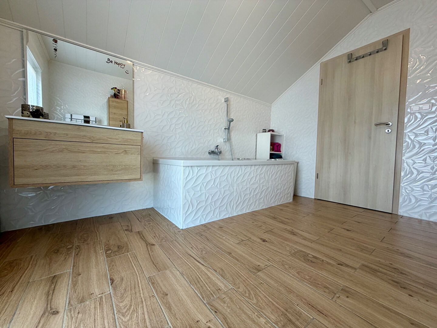 Située à Hunting (57480), à seulement 10 minutes de la frontière luxembourgeoise, cette maison construite en 2019 offre un cadre de vie paisible et moderne, idéal pour les frontaliers ou toute personne en quête de confort et de tranquillité. D'une surface habitable de 134 m², elle séduit par ses volumes lumineux et son atmosphère chaleureuse, mêlant style contemporain et charme champêtre. Au rez-de-chaussée, une belle entrée avec rangements mène à un vaste garage de 57 m², pouvant accueillir deux véhicules et offrant de nombreux espaces de stockage. Au premier étage, vous découvrirez une grande pièce de vie baignée de lumière, comprenant une cuisine ouverte, entièrement aménagée et équipée. L'ensemble s'ouvre sur un salon-séjour convivial, climatisé, donnant accès à une superbe terrasse couverte de 32 m² parfaite pour profiter des beaux jours en toute saison. Des toilettes séparées complètent ce niveau. A l'étage supérieur, la suite parentale de 31 m² dispose de sa propre salle d'eau et d'un bloc de climatisation réversible. Deux autres chambres et une salle de bains avec WC viennent compléter cet espace nuit. Le confort est assuré par un chauffage électrique et trois blocs de climatisation réversible (salon, chambre et suite parentale). Aucun travaux à prévoir : la maison est prête à accueillir ses nouveaux propriétaires. Ce bien combine modernité, confort et praticité, dans un environnement calme à proximité du Luxembourg. Les plus : Façade isolante EUROMAC2 , raccordé au tout à l'égout. Pour plus d'informations ou pour planifier une visite, contactez-nous dès aujourd'hui ! Les informations sur les risques auxquels ce bien est exposé sont disponibles sur le site Géorisques : www.georisques.gouv.fr