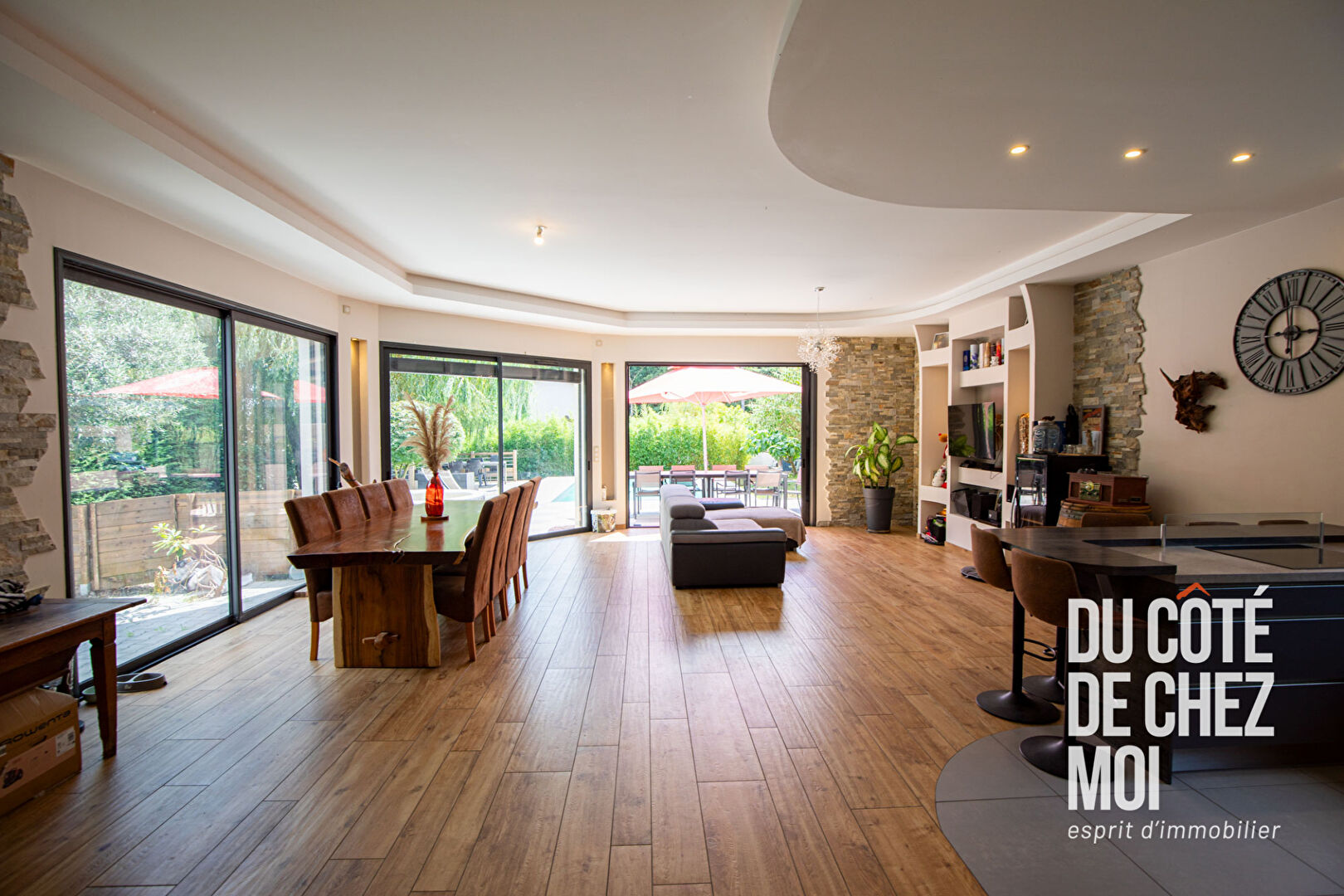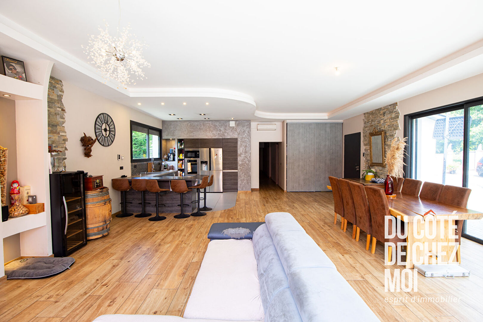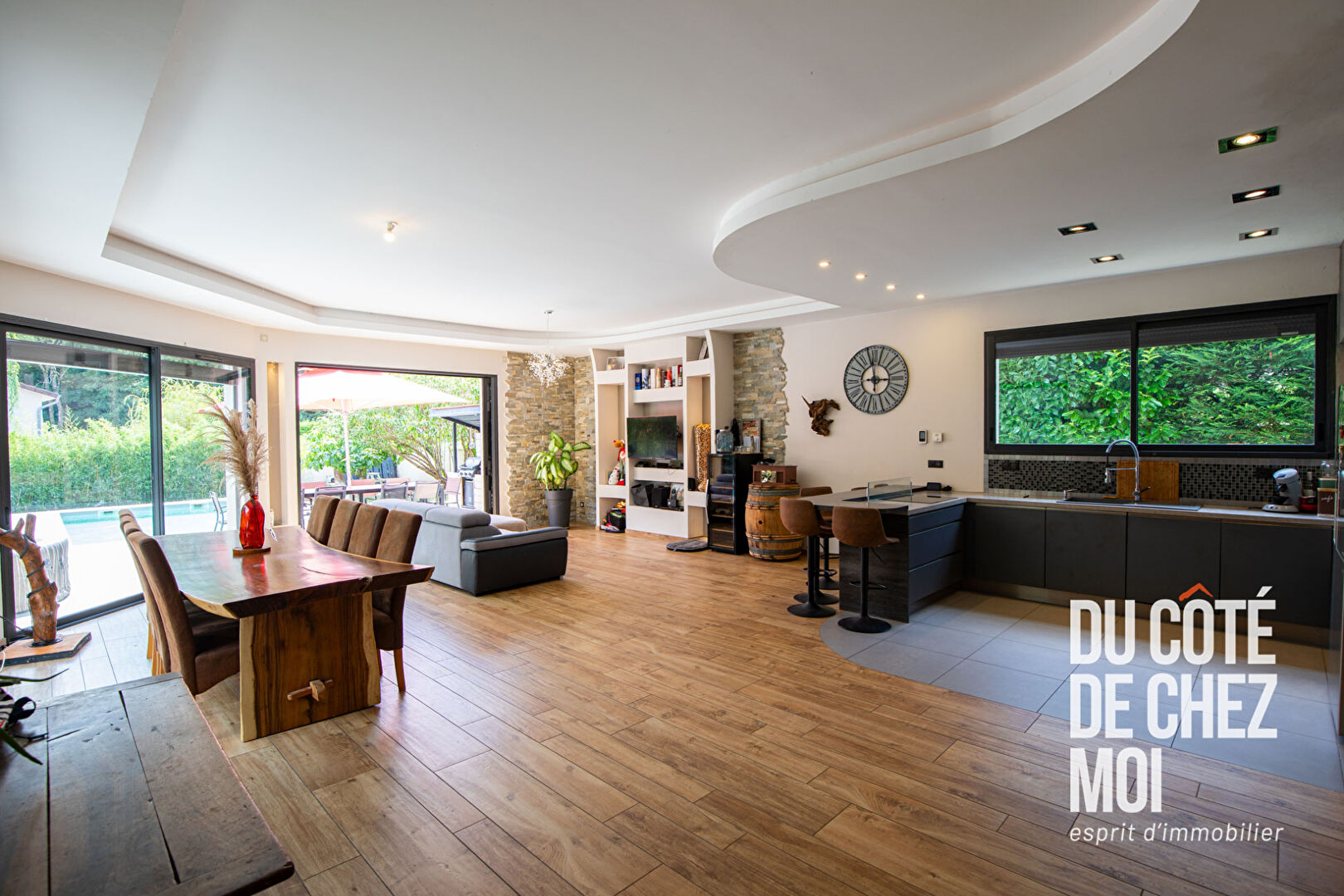 Priay - A quelques minutes de l'accès à l'A42 et d'Ambérieu-en-Bugey - Au calme, dans un quartier résidentiel à l'environnement privilégié, superbe maison de plain-pied à faible consommation énergétique de 186 m2 sur un terrain de 850 m2 avec piscine. Luminosité, volume et modernité pour cette villa ultra contemporaine, aux prestations haut de gamme, offrant une vaste pièce à vivre avec de grandes baies vitrées jouant sur un effet " dedans-dehors " ouverte sur l'extérieur et son espace piscine, une cuisine américaine aménagée et équipée, une suite parentale avec chambre, dressing, salle d'eau avec baignoire et douche à l'italienne, deux chambres bénéficiant d'une salle d'eau commune et communicante avec douche à l'italienne, une quatrième chambre avec salle d'eau et wc privatif, un bureau, une buanderie, un wc. Nombreux rangements. Huisseries double vitrage aluminium. Baies vitrées à galandage. Stores électriques brise-soleil orientables dans la pièce de vie. Stores électriques centralisés. Chauffage par le sol par pompe à chaleur. Chauffe-eau thermodynamique. Climatisation. Adoucisseur d'eau. Espace piscine avec cuisine d'été et double terrasse. Grand garage avec porte motorisée. Alarme. Fibre. Les honoraires sont à la charge du vendeur.