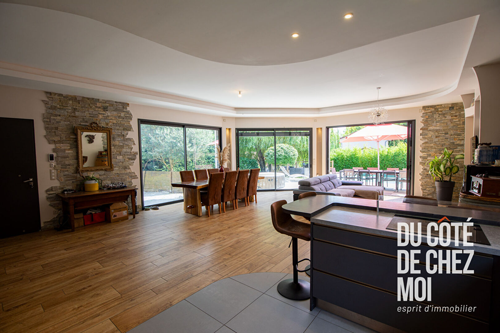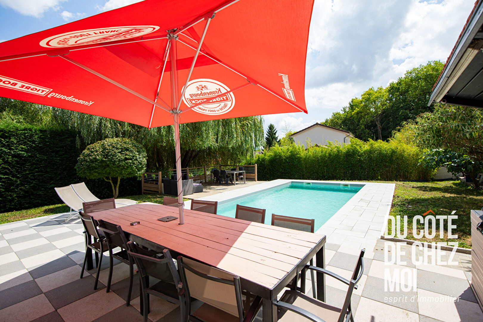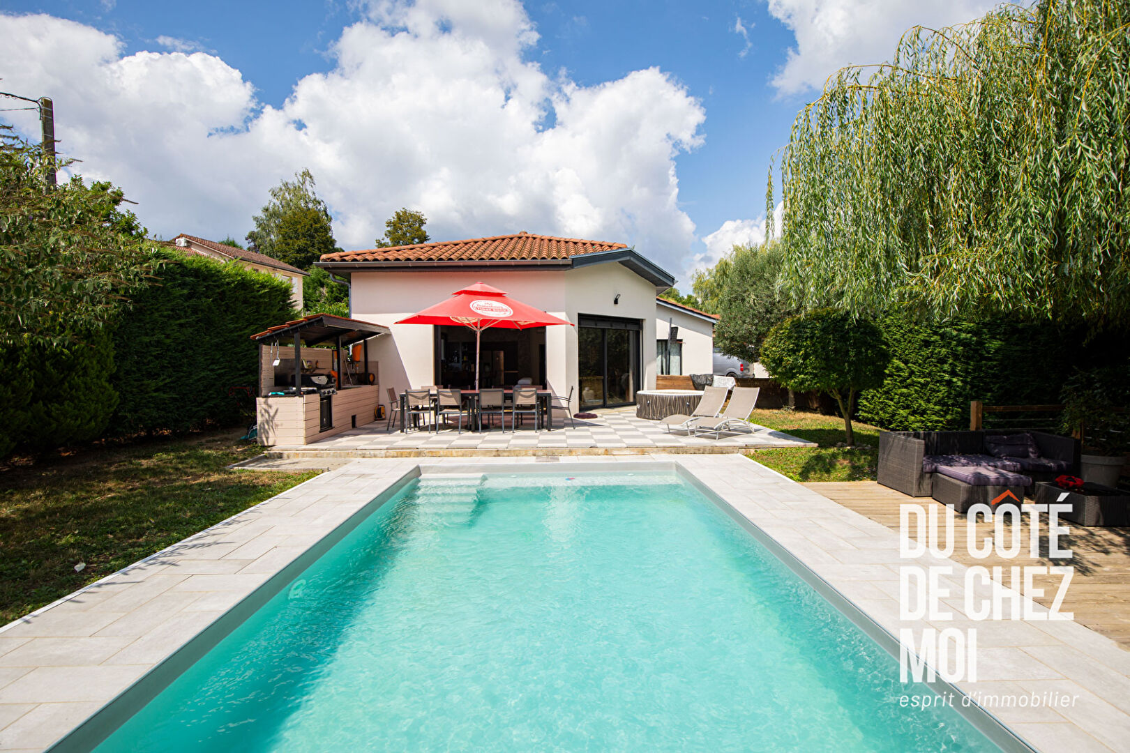 Priay - A quelques minutes de l'accès à l'A42 et d'Ambérieu-en-Bugey - Au calme, dans un quartier résidentiel à l'environnement privilégié, superbe maison de plain-pied à faible consommation énergétique de 186 m2 sur un terrain de 850 m2 avec piscine. Luminosité, volume et modernité pour cette villa ultra contemporaine, aux prestations haut de gamme, offrant une vaste pièce à vivre avec de grandes baies vitrées jouant sur un effet " dedans-dehors " ouverte sur l'extérieur et son espace piscine, une cuisine américaine aménagée et équipée, une suite parentale avec chambre, dressing, salle d'eau avec baignoire et douche à l'italienne, deux chambres bénéficiant d'une salle d'eau commune et communicante avec douche à l'italienne, une quatrième chambre avec salle d'eau et wc privatif, un bureau, une buanderie, un wc. Nombreux rangements. Huisseries double vitrage aluminium. Baies vitrées à galandage. Stores électriques brise-soleil orientables dans la pièce de vie. Stores électriques centralisés. Chauffage par le sol par pompe à chaleur. Chauffe-eau thermodynamique. Climatisation. Adoucisseur d'eau. Espace piscine avec cuisine d'été et double terrasse. Grand garage avec porte motorisée. Alarme. Fibre. Les honoraires sont à la charge du vendeur.