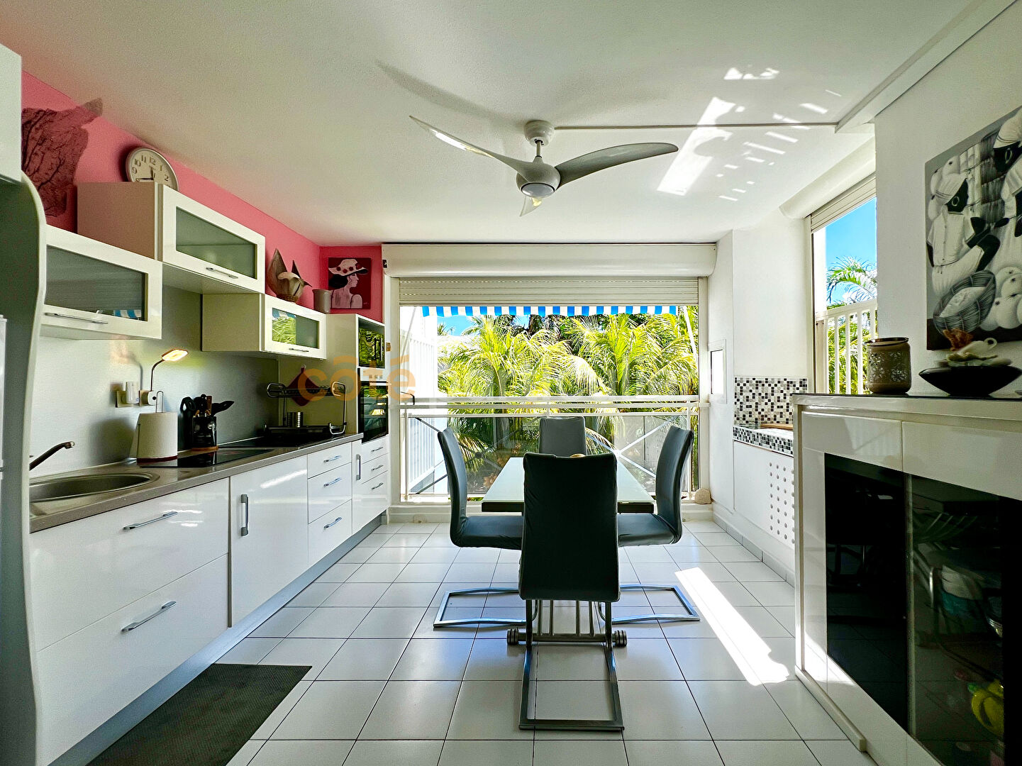 Résidence Les Boucaniers Saint-François, Guadeloupe Vous rêvez d'un pied-à-terre fonctionnel, sans travaux, dans un environnement calme et recherché , cet appartement en parfait état, situé au 1er étage sans vis-à-vis, saura vous séduire par son agencement optimisé et ses prestations soignées. Une entrée astucieuse avec deux lits superposés et rangements intégrés, idéale pour accueillir famille ou amis. Une salle d'eau moderne avec douche à l'italienne, WC, lavabo, et citerne de 300L pour votre confort en toute saison. Une pièce de vie lumineuse offrant un couchage supplémentaire pour deux personnes. Une spacieuse terrasse ensoleillée, véritable pièce à vivre supplémentaire, équipée d'une cuisine complète (meubles, électroménagers), d'un store bannes et d'un store électrique pour moduler lumière et intimité. Situé à la Marina et à proximité des plages, commerces, restaurants et activités nautiques, ce bien représente une opportunité idéale pour un investissement locatif saisonnier ou une résidence secondaire sans contraintes. Bien soumis au statut de la copropriété. Climatisation, brasseurs d'air, citerne 300L etc ... Aucun travaux à prévoir. (5.65 % honoraires TTC à la charge de l'acquéreur.) Copropriété de 40 lots (Procédure en cours). Charges annuelles : 1280 euros.