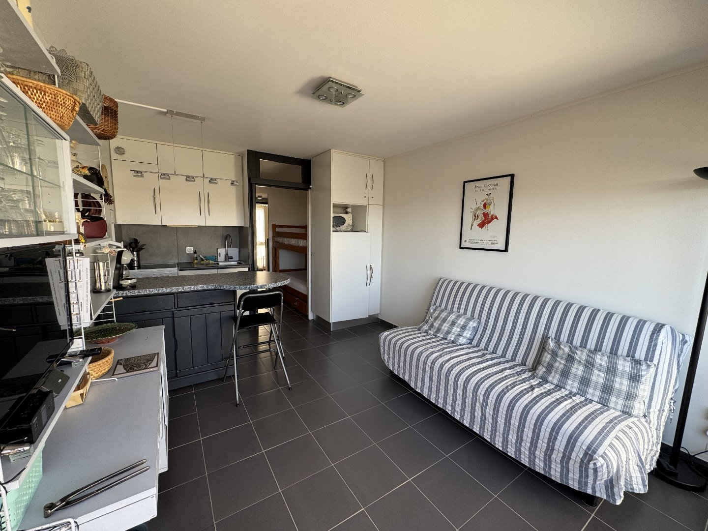 Situé dans la marina, quartier des quilles, appartement en parfait état, traversant, en étage élevé avec ascenseur. Il se compose d'une entrée, salle d'eau avec machine à laver, Wc séparé, pièce de vie, cuisine ouverte toute équipée, une chambre avec rangements, d'un espace lits superposés et un canapé convertible de bonne qualité dans le séjour. L'appartement est vendu meublé, pourvu d'une place de parking privative, cerise sur le gâteau, possibilité d'acheter d'un garage dans la résidence (en plus du prix). Bien soumis au statut juridique de la Copropriété. Nb de lots : 110. CAC : 975 €. Pas de procédure en cours. Montant estimé des dépenses annuelles d'énergie pour un usage standard : entre 643 € et 871 € par an. Prix moyens des énergies indexés sur les années 2021 2022 2023 (abonnement compris). Surface CARREZ : 30.64 m²