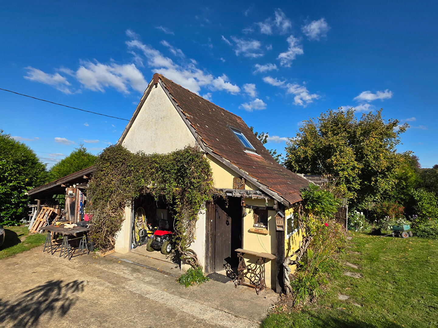 Proche BELLEME en campagne vallonnée, avec vue dominante, au bout d'une chemin sans vis à vis maison avec dépendances, comprenant , entrée, séjour, cuisine avec coin repas, bureau et deux salles d'eau, lingerie. à l'étage , pièce palière, 3 chambres , wc en extérieur, terrain planté et arboré , garage avec pièce aménagée au-dessus, ateliers le tout sur 5900 m²