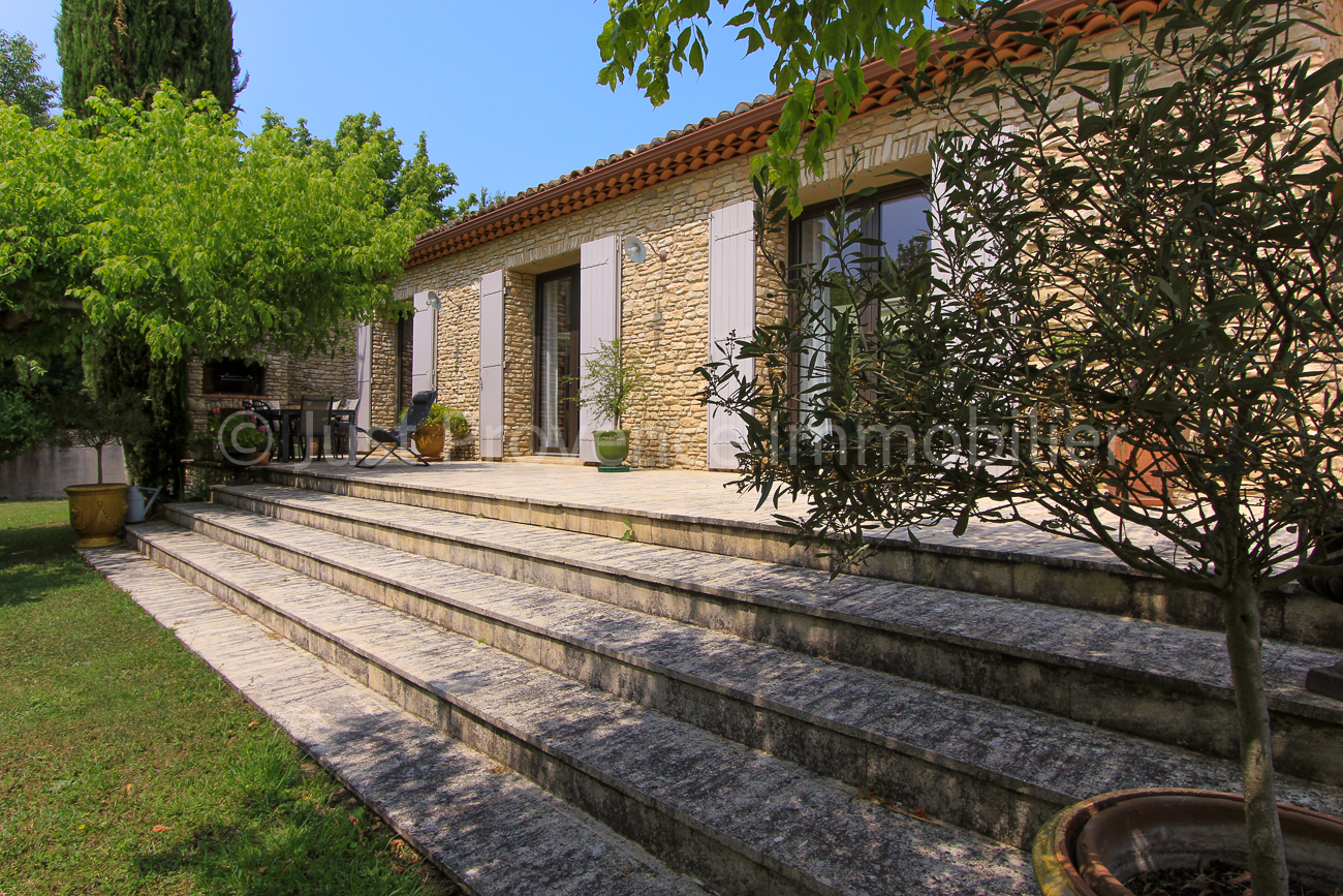 Carpentras en campagne dans un environnement calme très belle propriété en pierre d'environ 230 m2 construite autour d'un patio intérieur de 16 m2. Elle se compose d'une spacieuse et lumineuse pièce de vie de plus 84 m2, avec sa cheminée monumentale en pierre ,d'une cuisine indépendante ouverte sur une terrasse et son jardin, une suite parentale de 45 m2 avec salle de bain complète et dressing, 2 chambres de 12.65 m2 avec placard, une salle de bain de 7.60 m2 , nombreux rangements, une buanderie de 20 m2, une cave ainsi qu'un garage de 46 m2 pouvant accueillir 2 véhicules. Côté jardin un superbe espace détente avec une piscine de 10 x 5 pour profiter des belles journées ensoleillées de la Provence Véritable coup de coeur pour cette maison aux prestations soignées Pour plus de renseignements contacter l'agence au 06.80.62.23.31 REF 300 Claudie BERRET - EI - Agent commercial immatriculé au RSAC de Avignon sur le numéro : 432 945 616 Consommation énergétique: 188 kWh/m²/an (C) Émission de gaz à effet de serre: 35 KgCO2/m²/an (A) Estimation des coûts annuels d'énergie du logement entre 2590 euros et 3580 euros par an. Les informations sur les risques auxquels ce bien est exposé sont disponibles sur le site géorisques: www.georisques.gouv.fr