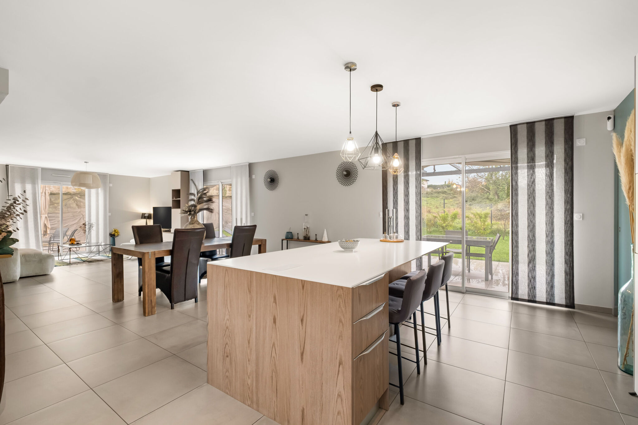 * SOUS OFFRE ACCEPTEE * JUNE IMMOBILIER vous propose cette belle maison contemporaine construite en 2017, sur la commune de Valencin, proche du centre village.Au rez-de-chaussée, une entrée avec placards intégrés, une grande pièce de vie d'environ 70 m², qui offre un bel espace salon / salle à manger et une cuisine ouverte entièrement équipée.Toujours au rez-de-chaussée, une suite parentale de plus de 27 m², avec sa salle d'eau privative et son dressing.Pour compléter ce niveau, un cellier / buanderie, un garage carrelé et isolé ainsi qu'un WC indépendant.À l'étage, l'espace nuit comprend deux grandes chambres de plus de 13 m² chacune, une salle d'eau et un WC séparé.Côté prestations :Aspiration centraliséeAdoucisseur d'eauVolets roulants électriquesMenuiseries PVC double vitragePorte de garage et portail motorisésChauffage au sol par pompe à chaleur air / eauExcellentes performances énergétiques (DPE A)Contactez JUNE IMMOBILIER au 04 37 65 15 80 ou Julien SAROLI au 06 16 47 82 98.3, route de Marennes 69970 Chaponnay - DPE A - Honoraires charges vendeurs. (gedeon_89919_32125856)