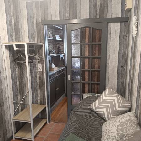 Ce grand studio, au 1er étage, se compose d'une pièce de vie avec couchage, d'un couloir d'environ 5,5 M2, pouvant servir de chambre passante, avec accès à une salle d'eau / wc et à une véranda qui est aménagée en cuisine, toute équipée. Celle ci donne sur un beau jardin et un cabanon est présent.