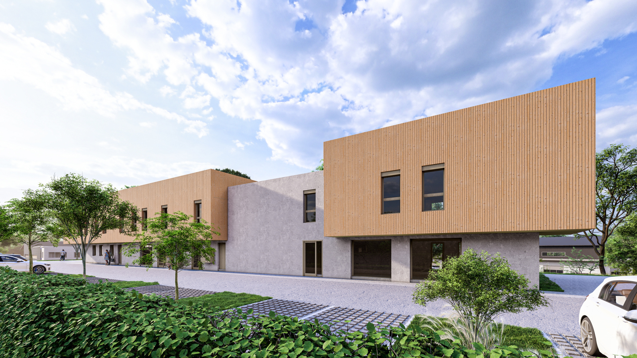 Démolition en septembre - Nous démarrons par les travaux de la maison de santé et dans la continuité, nous réalisons 2 bâtiments modernes et dans l'air du temps avec plus de parkings
