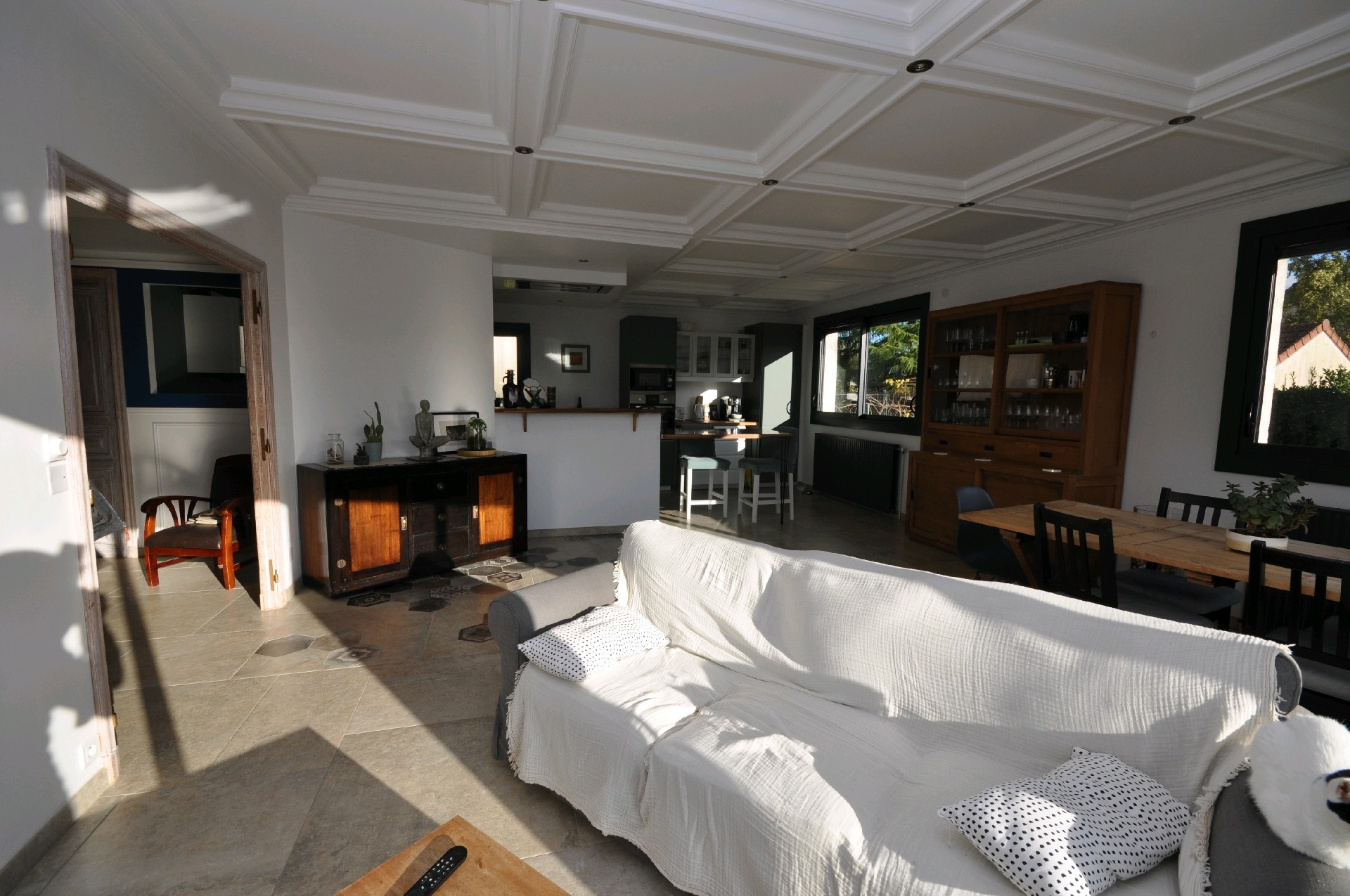 lavabo) et un bureau, plus une partie grenier aménageable. Nombreux travaux récents (isolation générale, carrelage de qualité dans les pièces à vivre, double vitrage en aluminium dont une baie vitrée,