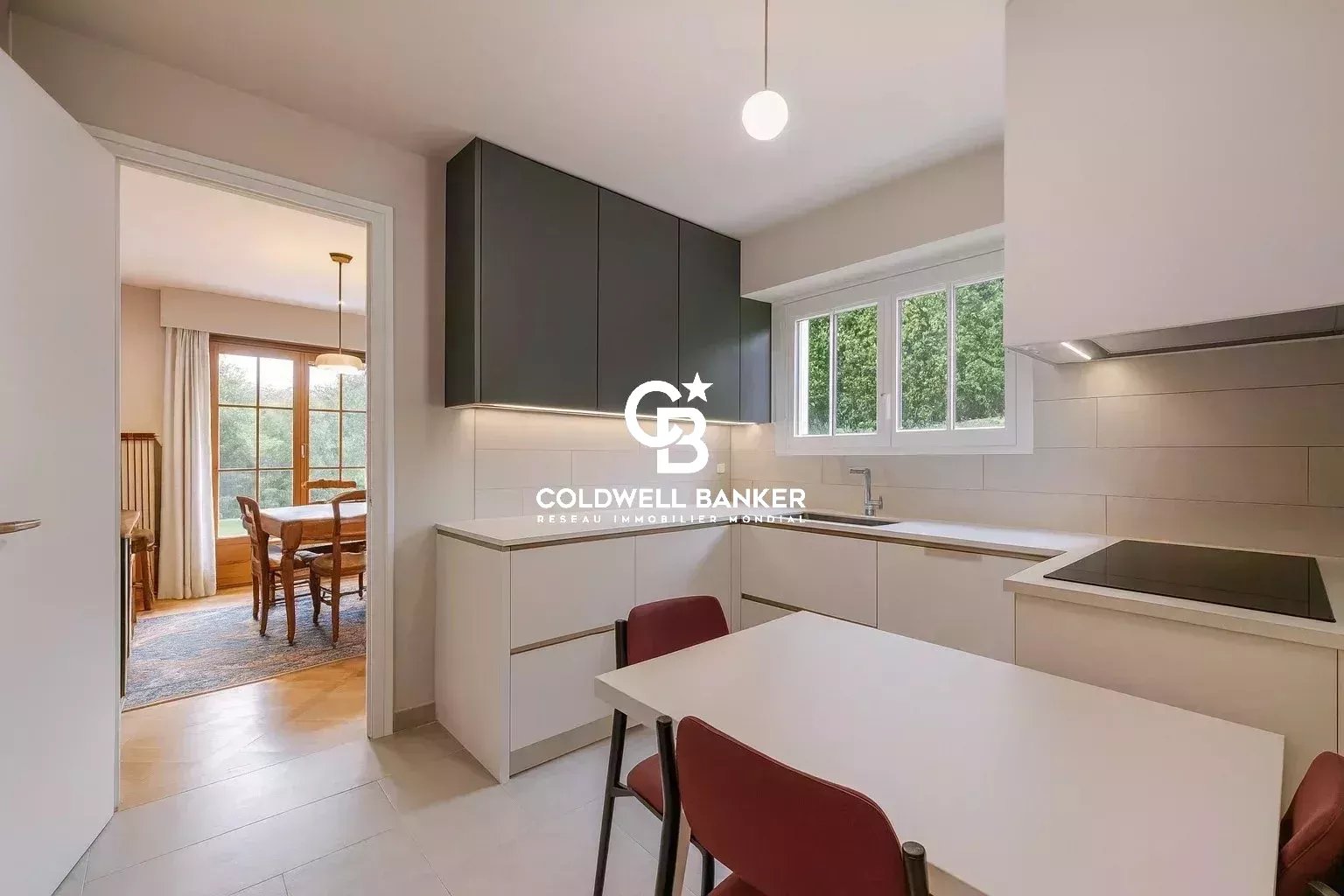 Dans l’un des secteurs les plus prisés de Vétraz-Monthoux, au cœur du bassin genevois, cette demeure de caractère offre 206 m² habitables (300 m² utiles) dans un cadre serein et résidentiel, à l’abri des regards et en position dominante. Dès l’entrée, l’atmosphère chaleureuse et élégante se révèle. Le niveau principal accueille un séjour lumineux ouvrant sur une terrasse plein Sud, offrant un panorama exceptionnel sur les montagnes, du Salève au Môle. Une cuisine indépendante, quatre chambres dont deux avec accès direct à la terrasse et vue dégagée, ainsi qu’une vaste salle d’eau complètent cet étage. Un superbe escalier en bois massif, parfaitement conservé, conduit au premier niveau. Vous y découvrirez une suite parentale avec vue, une seconde chambre, une salle de bains spacieuse, ainsi qu’une pièce polyvalente idéale pour salle TV, salle de jeux ou bureau, et de généreux espaces de rangement sous combles. La toiture, isolée en laine de roche, témoigne de la qualité de construction du bien. Le sous-sol entièrement aménagé comprend une cave à vin, plusieurs espaces de stockage, une buanderie, un atelier, un local jardin, une chaufferie ainsi qu’un vaste garage. Édifiée sur une parcelle arborée de 3 351 m² plantée de pommiers, la propriété bénéficie d’un environnement naturel exceptionnel avec, selon les conditions météo, une vue privilégiée jusqu’au Mont-Blanc. La configuration du terrain permettrait l’aménagement d’une piscine avec une vue panoramique unique. Un lieu de vie rare, idéal pour une famille recherchant calme, nature, vue dégagée et proximité immédiate de Genève. – Informations complémentaires. Les informations sur les risques auxquels ce bien est exposé sont disponibles sur : www.georisques.gouv.fr Votre agence Coldwell Banker Désormière Realty à Annemasse et son équipe vous accueillent du lundi au vendredi pour organiser une visite selon vos disponibilités.