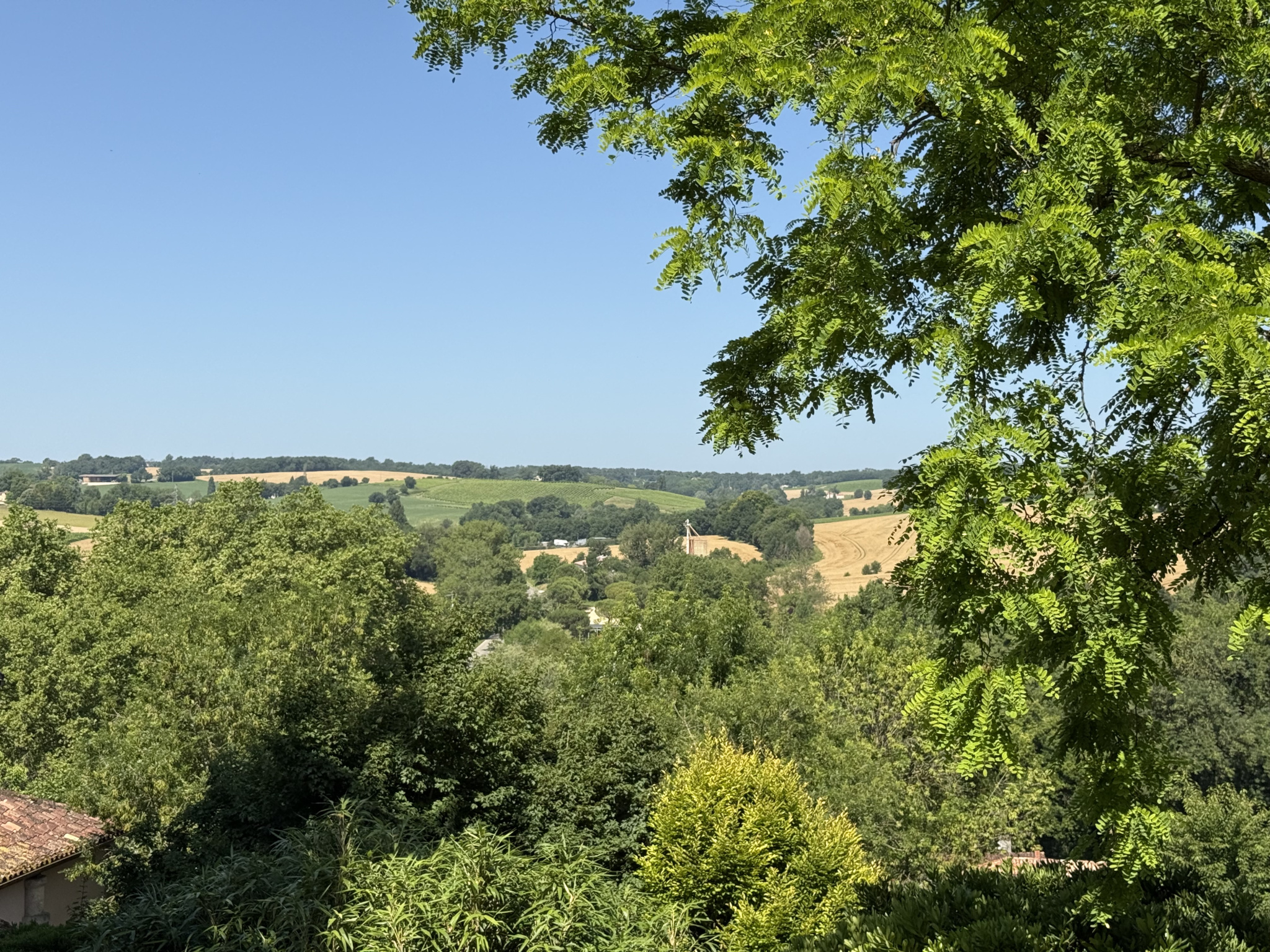Un bel escalier en bois menant à l'étage dessert un palier, une suite parentale avec salle d'eau et dressing profitant d'une vue sur le jardin attenant et la campagne,