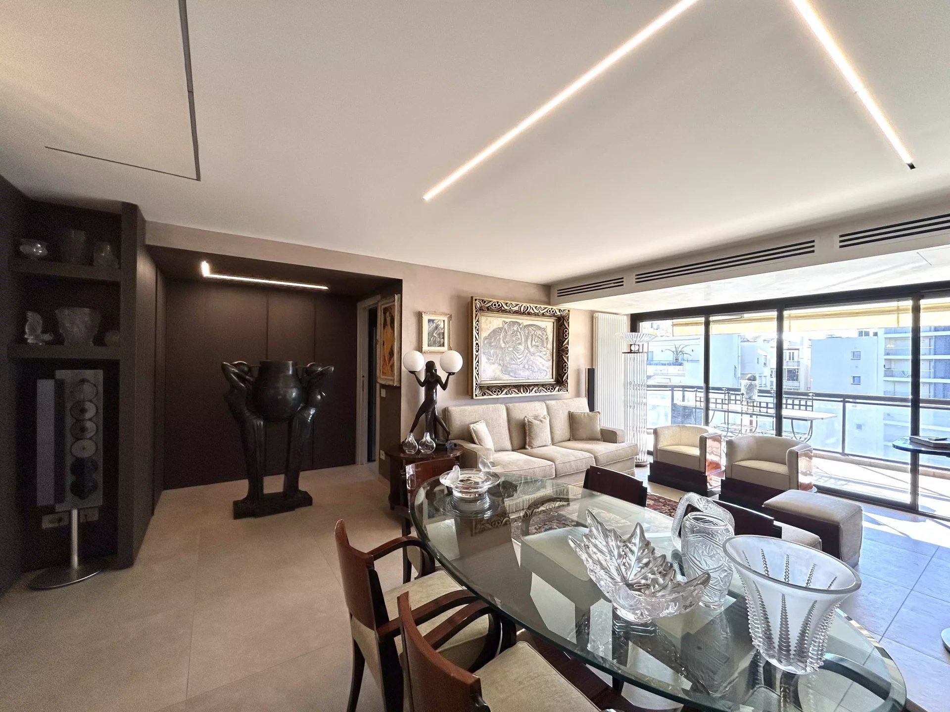 À deux pas de la mythique Croisette, au sein de la prestigieuse résidence « Les Jardins de la Croisette », découvrez cet élégant appartement de 57 m² situé au 5ᵉ étage. Baigné de lumière, il se compose d’une belle entrée avec rangements, d’un vaste séjour/salle à manger ouvrant sur une terrasse spacieuse de 18 m² offrant un agréable aperçu mer, d’une cuisine aménagée et entièrement équipée, ainsi que d’une chambre confortable avec de nombreux placards intégrés. Une salle de douche moderne et un WC indépendant complètent ce bien aux volumes généreux. L’appartement séduit par sa luminosité, son agencement fonctionnel et son emplacement d’exception, au cœur d’une résidence de grand standing avec gardien. Un garage en sous-sol et une cave viennent parfaire cet ensemble rare sur le marché cannois. Un pied-à-terre idéal ou un investissement de prestige à seulement quelques mètres des plages et des boutiques de la Croisette.