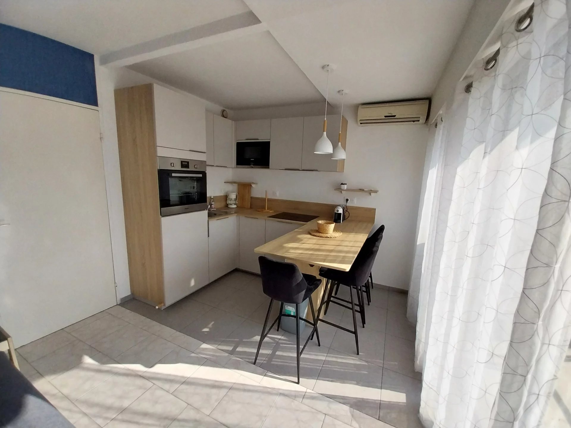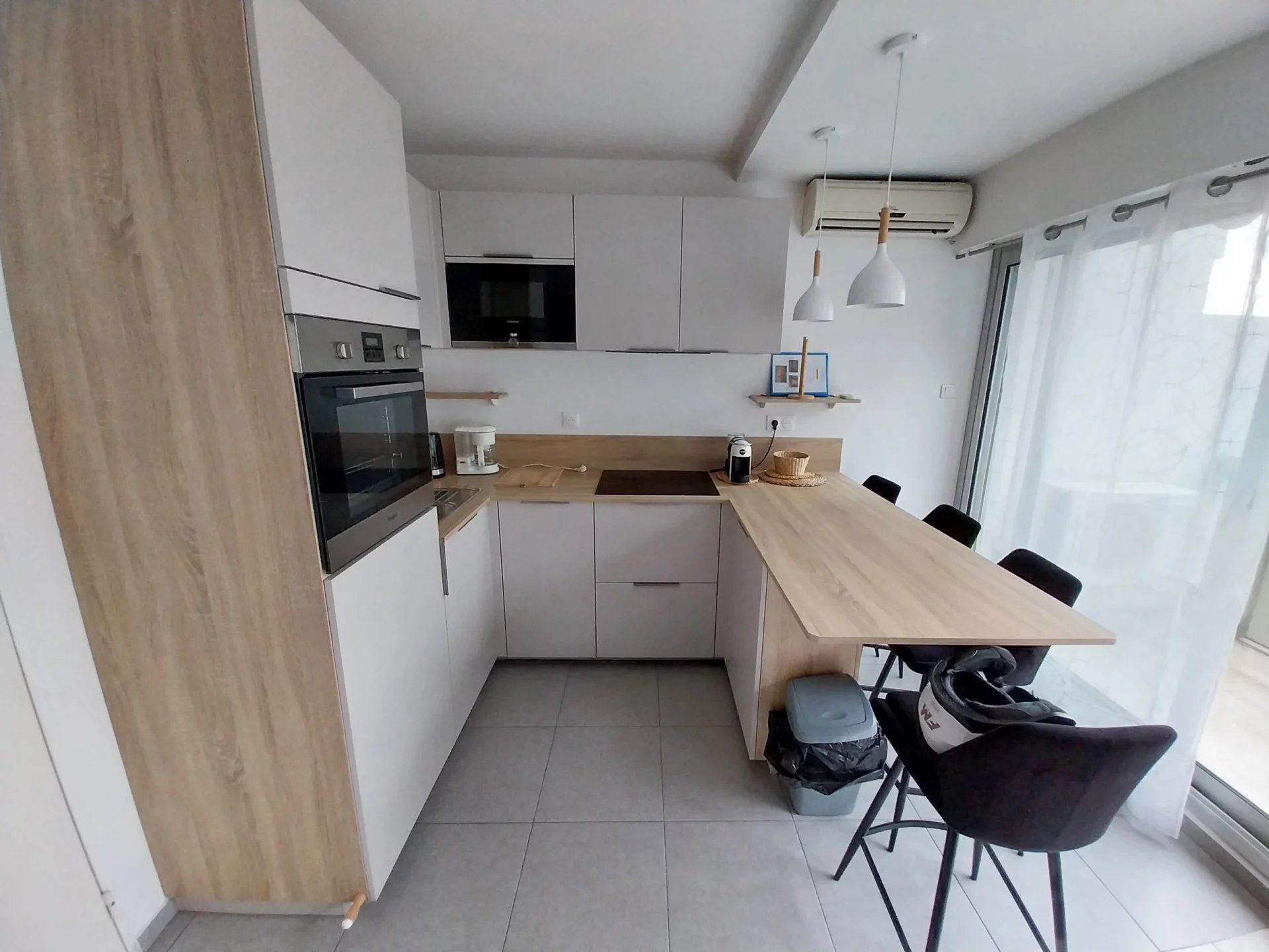 MENTONE GARAVAN - APPARTAMENTO VISTA MARE CON TERRAZZA Al quarto piano di uno stabile moderno fronte mare, con ascensore, custode e piscina condominiale, vi proponiamo in vendita IN ESCLUSIVA uno spazioso studio con superficie interna utile calpestabile pari a 33,66 m2 e in buone condizioni generali composto di: ingresso con armadio a muro, soggiorno con cucina americana arredata nuova, angolo notte, bagno con vasca, W.C. indipendente e terrazzo. Appartamento molto luminoso grazie alla sua esposizione ovest. Una cantina nel seminterrato completa questa proposta. Lo stabile si trova sul fronte mare a pochi passi dalla zona pedonale e dal centro cittadino, comodo a tutti i commerci, servizi e trasporti. APE classe energetica "D". Possibilità di acquistare un posto auto coperto nello stabile con supplemento di prezzo. Onorari di agenzia inclusi a carico del venditore. Le informazioni sui rischi a cui è esposto questo immobile sono disponibili sul sito Georisques: georisques.gouv.fr