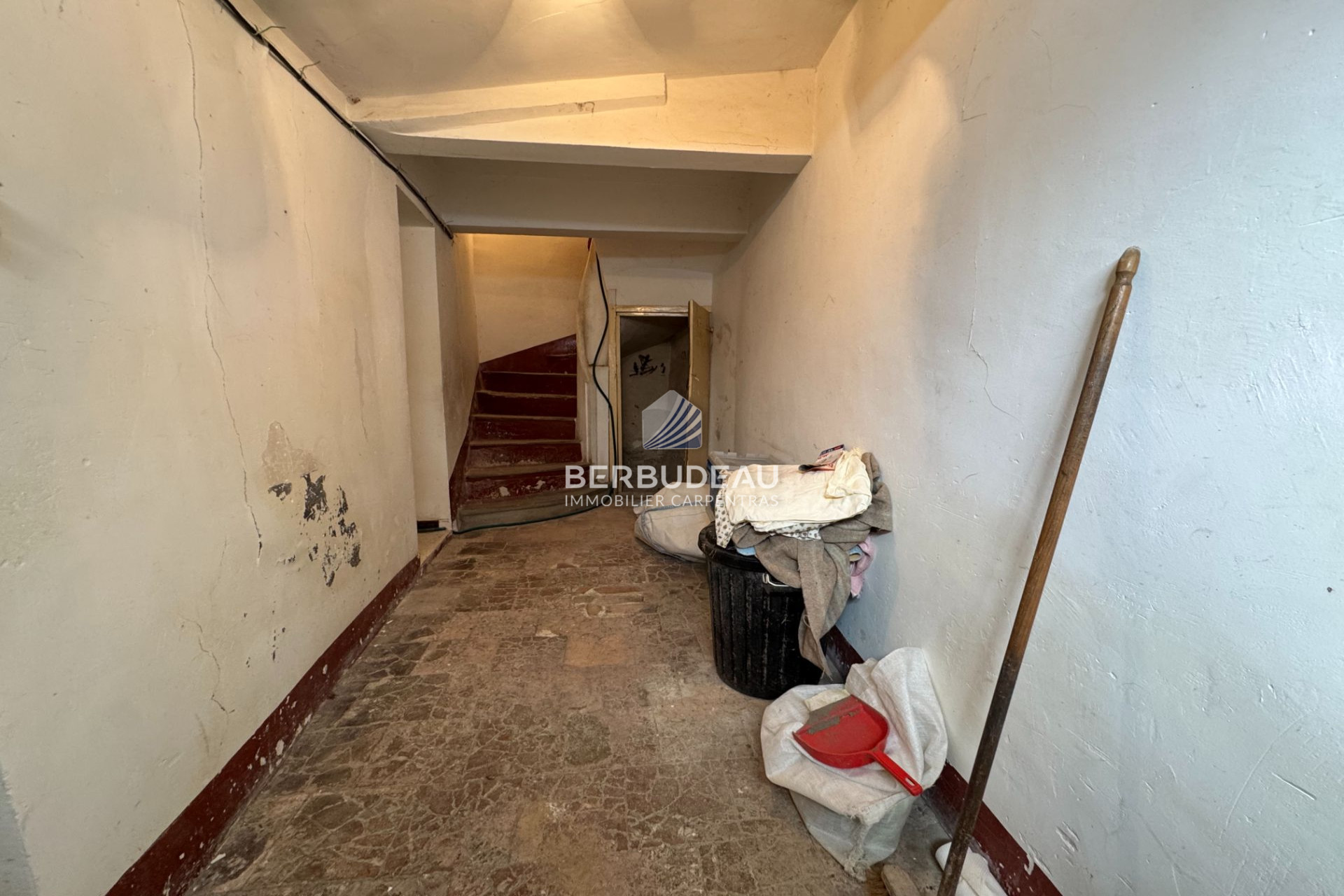 Au rez-de-chaussée on trouve deux grandes caves et un petit garage ainsi que les sanitaires ; au premier on a la pièce à vivre avec coin cuisine et une grande chambre ; au second le grenier est aménageable (deux autres chambres possibles).