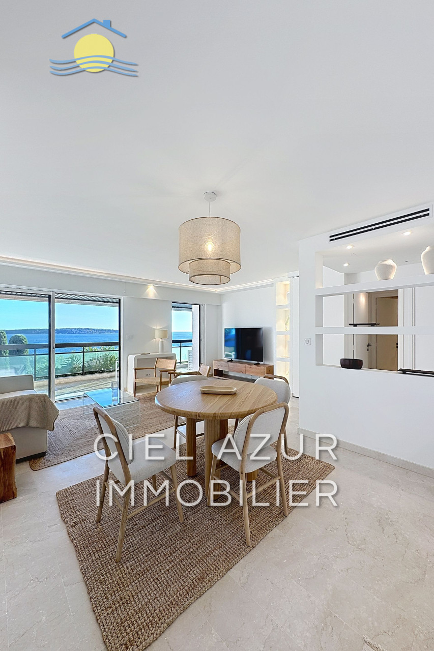 Baigné de lumière grâce à son exposition sud / sud ouest, l'appartement offre une vue époustouflante sur la Méditerranée, depuis le séjour comme la chambre.