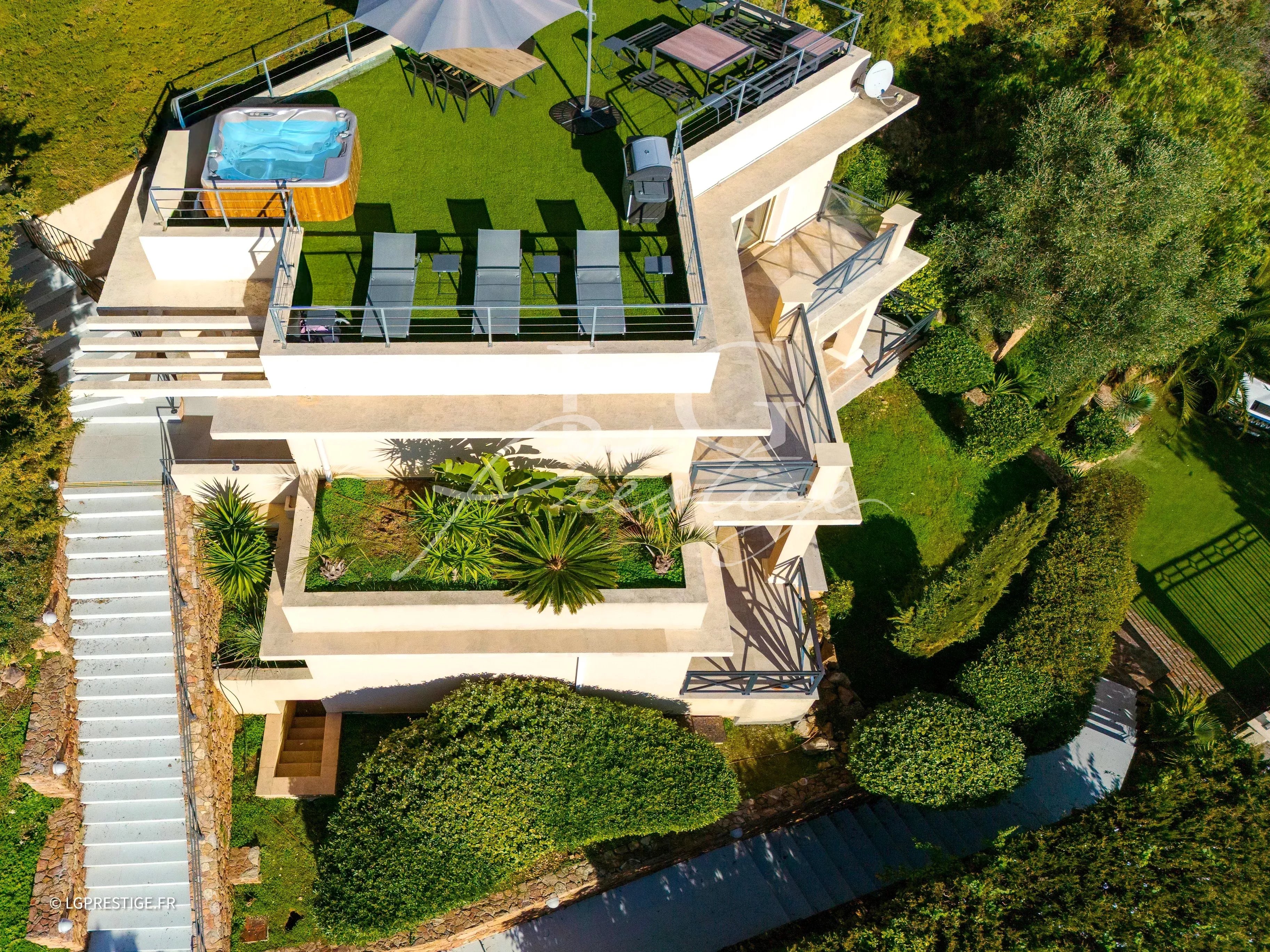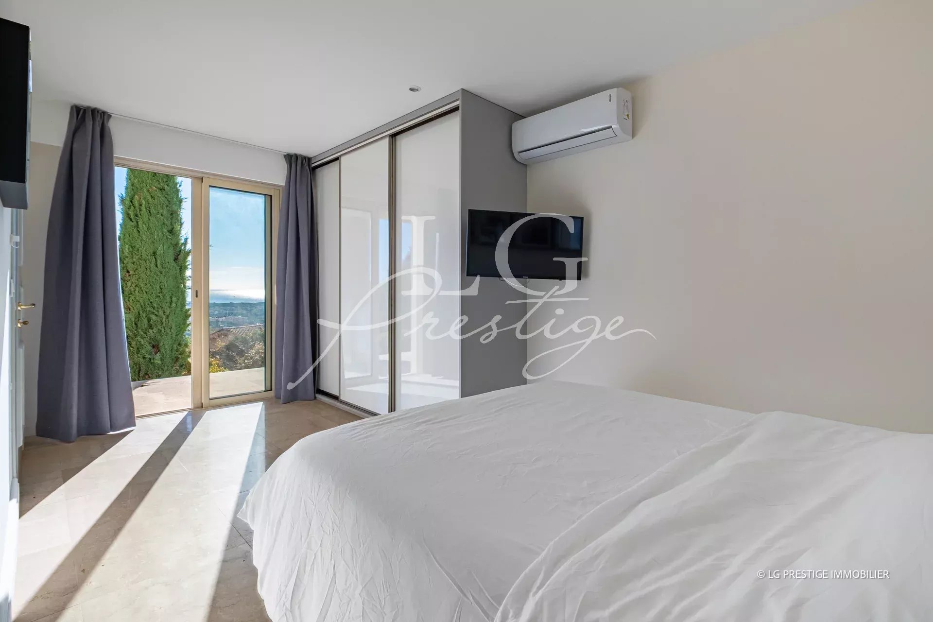 À MANDELIEU – à seulement 8 km de CANNES Votre agence LG Prestige Immobilier à Mandelieu-La Napoule vous propose cette superbe villa contemporaine offrant une vue mer panoramique exceptionnelle, idéalement située dans le quartier résidentiel recherché des Termes. Entièrement rénovée, cette villa d’environ 118 m², exposée Sud-Est, se compose d’une entrée, d’un séjour lumineux avec cuisine équipée ouverte sur la salle à manger, de trois chambres, chacune avec sa salle d’eau privative, ainsi que de belles terrasses dominant un jardin paysager de 990 m². Stationnements pour plusieurs véhicules complètent ce bien.