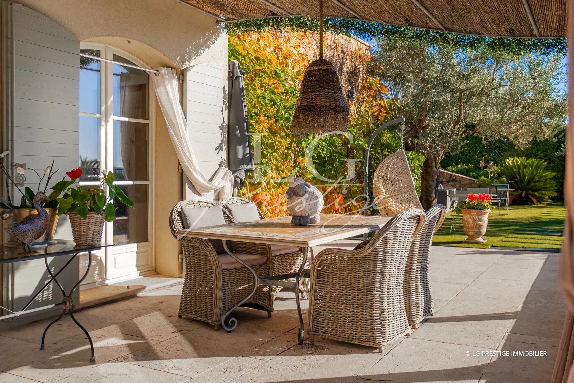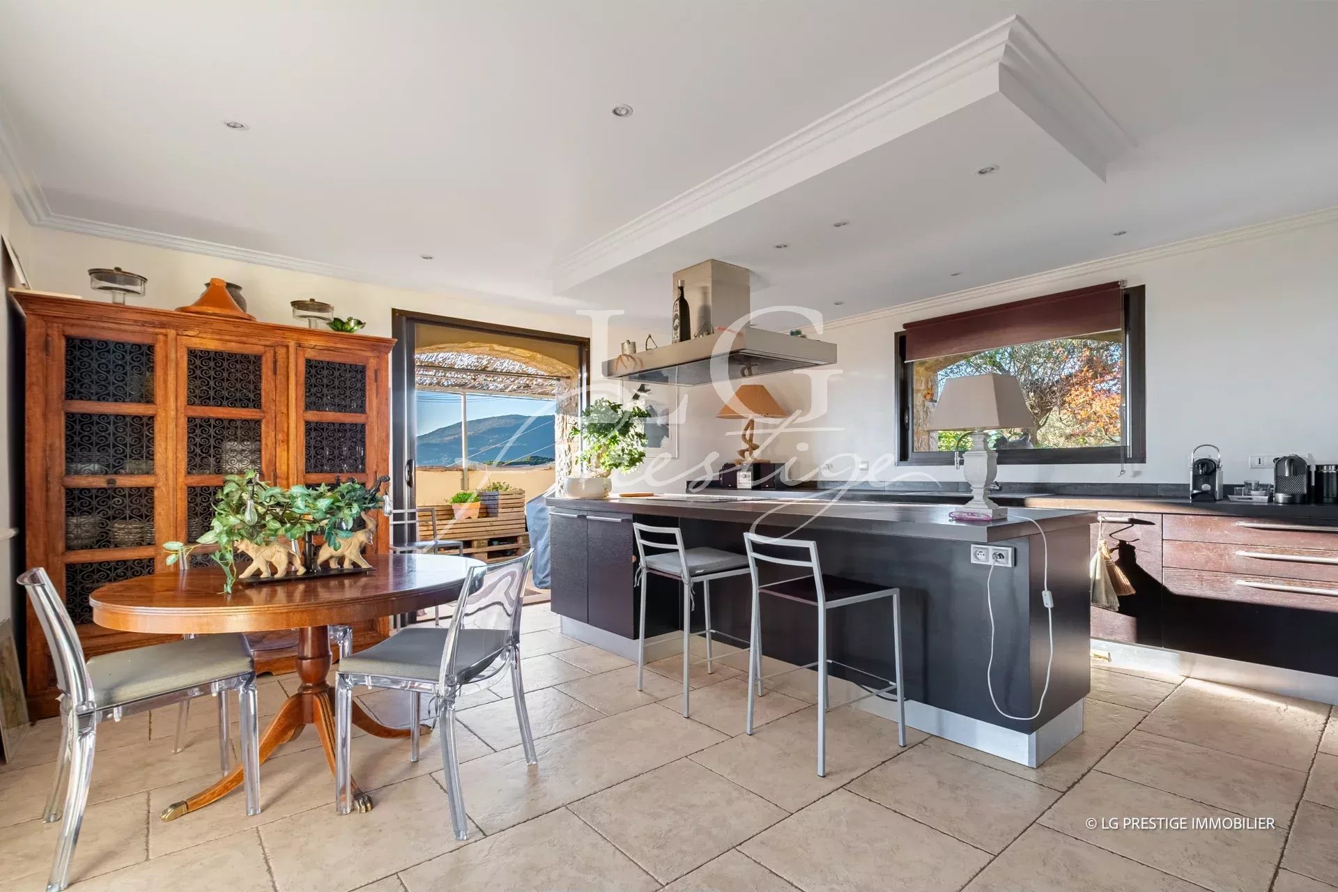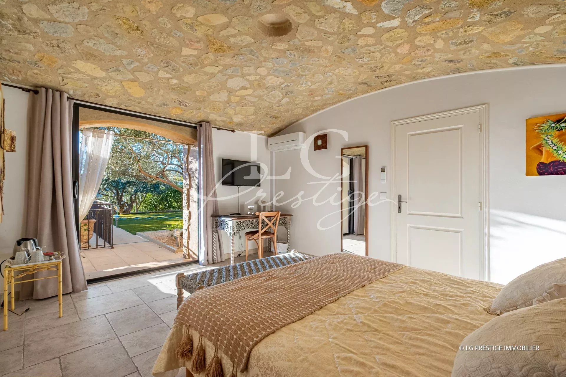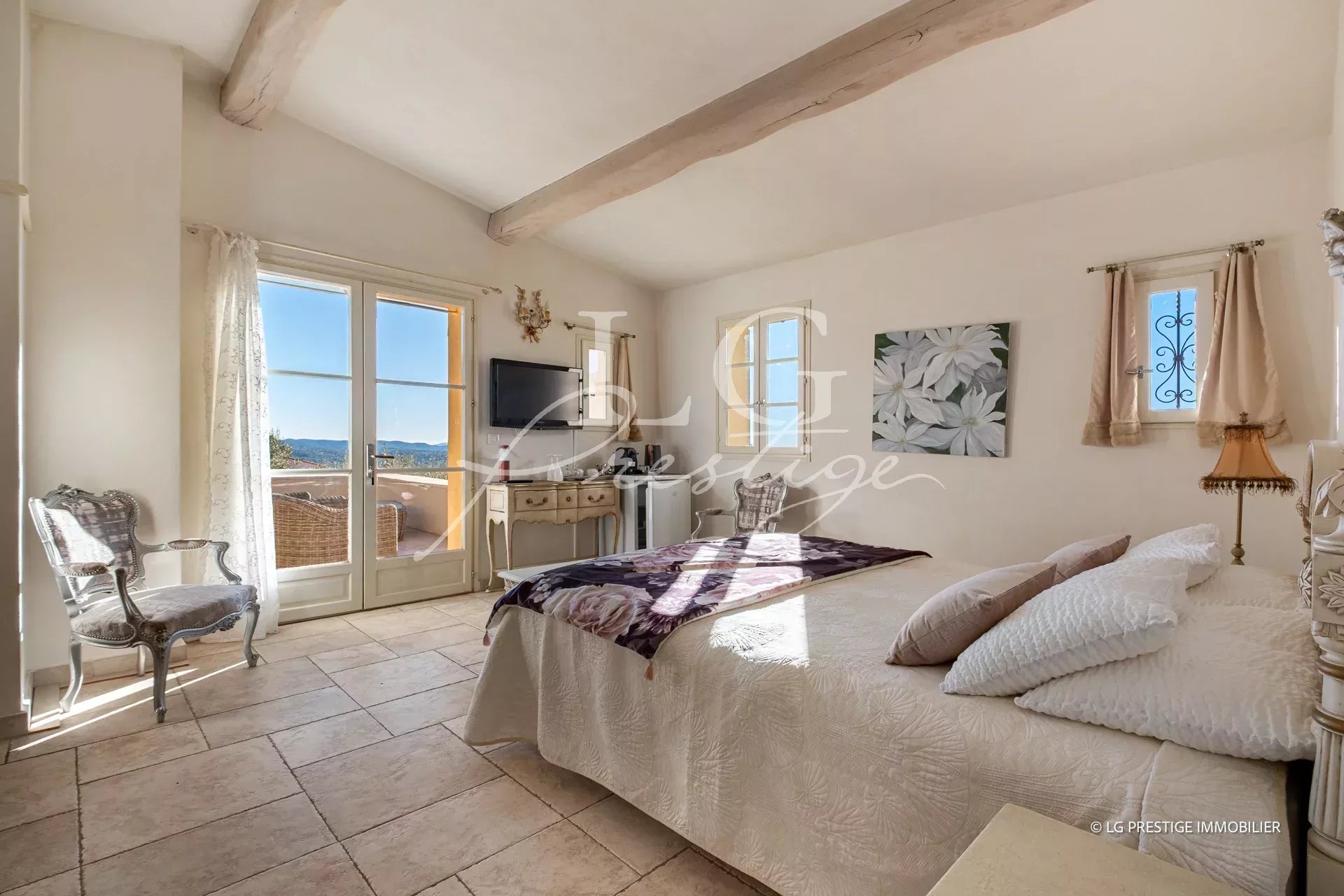 Idéalement située, la propriété se trouve à 9 minutes à pied du village de Fayence et à seulement 8 km du prestigieux Golf de Terre Blanche. Dans l’un des quartiers résidentiels les plus convoités, découvrez cette somptueuse propriété provençale d’environ 380 m² habitables, offrant une vue panoramique à couper le souffle. Pensée pour un art de vivre élégant et raffiné, la demeure déploie : Sept suites privées, chacune avec salle de bains, Une cuisine haute gamme entièrement équipée, Un spa intérieur pour des instants de pure détente, Un studio indépendant pour recevoir en toute confidentialité, Un garage fermé. À l’extérieur, un jardin méditerranéen impeccablement dessiné accueille de larges terrasses et une piscine au sel chauffée, véritable havre de sérénité.