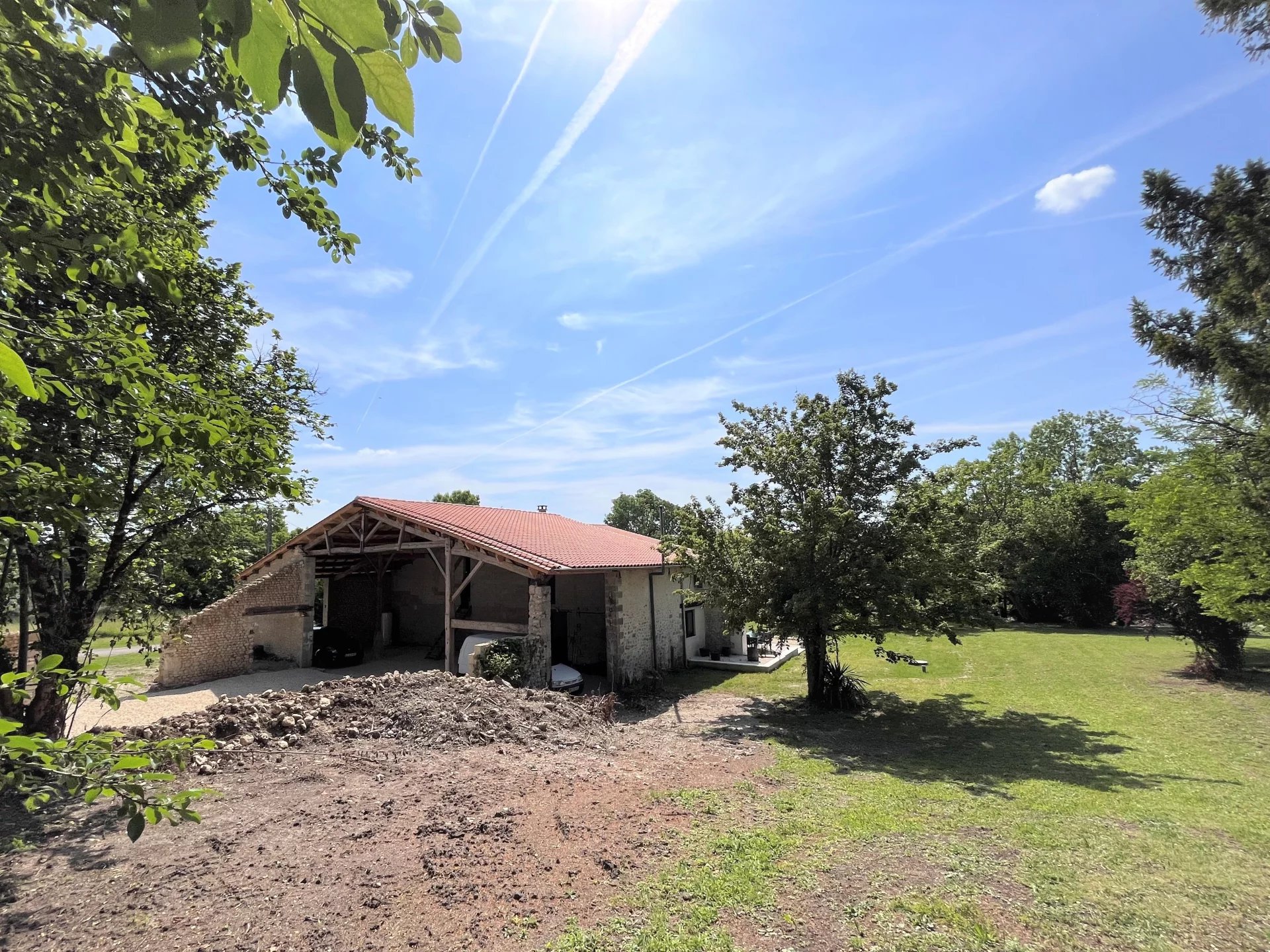 Cette propriété a subi un relooking complet depuis 2020 et jusqu'à aujourd'hui. Un équilibre a été choisi entre le moderne et le rustique. La cuisine ultramoderne entièrement équipée offre un accès immédiat à la grange couverte et à la salle à manger avec terrasse ensoleillée. Le salon spacieux est situé au centre entre deux belles chambres à coucher, chacune avec sa salle de douche. Du salon, on accède directement au jardin de 5000 m2, qui n'attend que la construction d'une piscine olympique, bien qu'elle puisse être plus petite. Le sous-sol peut également servir de chambre froide ou d'espace de couchage supplémentaire. L'étage supérieur est équipé de toutes les connexions techniques pour créer 2 chambres supplémentaires avec salle de bain privée. La grange attenante semi-ouverte offre également la possibilité d'être à l'extérieur toute l'année, quelles que soient les conditions météorologiques. Cette propriété magique est située à environ 5 kilomètres de notre Montmoreau. Vous pouvez vous faire une première impression grâce à notre visite virtuelle, mais dans ce cas, seule une visite personnelle vous permettra d'apprécier pleinement tous les avantages en termes d'emplacement et de finition. N'hésitez pas à nous contacter.