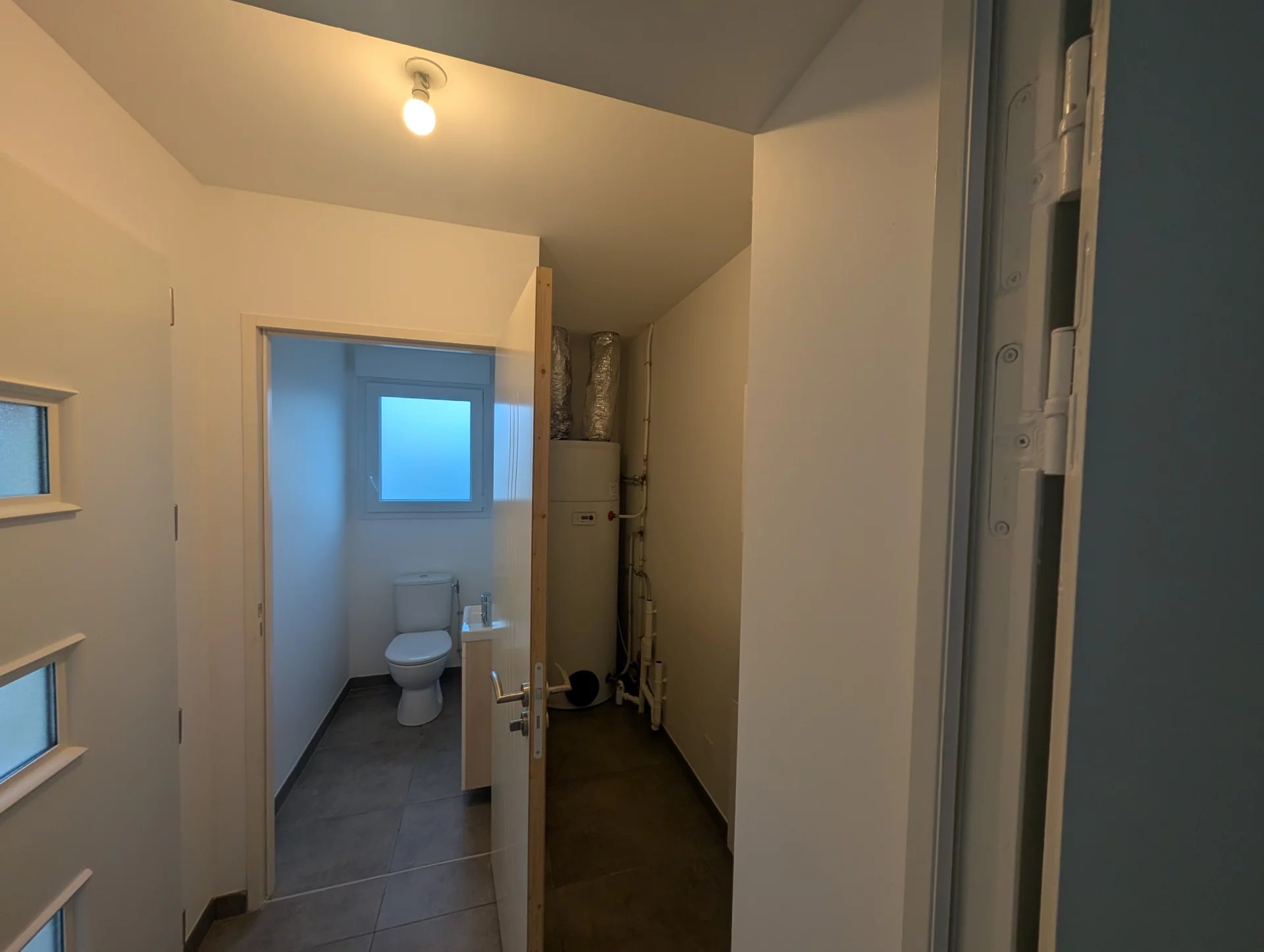 Maison neuve BBC à Clairoix – à seulement 5 minutes de Compiègne DISPONIBLE LE 10 NOVEMBRE Située dans une impasse au calme, cette maison récente offre de belles prestations : système thermodynamique, volets roulants électriques et excellente performance énergétique (DPE A). Surface habitable : environ 100 m² Composition : Rez-de-chaussée : vaste pièce de vie lumineuse avec cuisine équipée ouverte, WC. Étage : trois chambres, salle d’eau moderne avec WC. Jardin privatif – environnement paisible à proximité immédiate des commerces, écoles et de la gare de Compiègne. Loyer : 1 010 € / mois