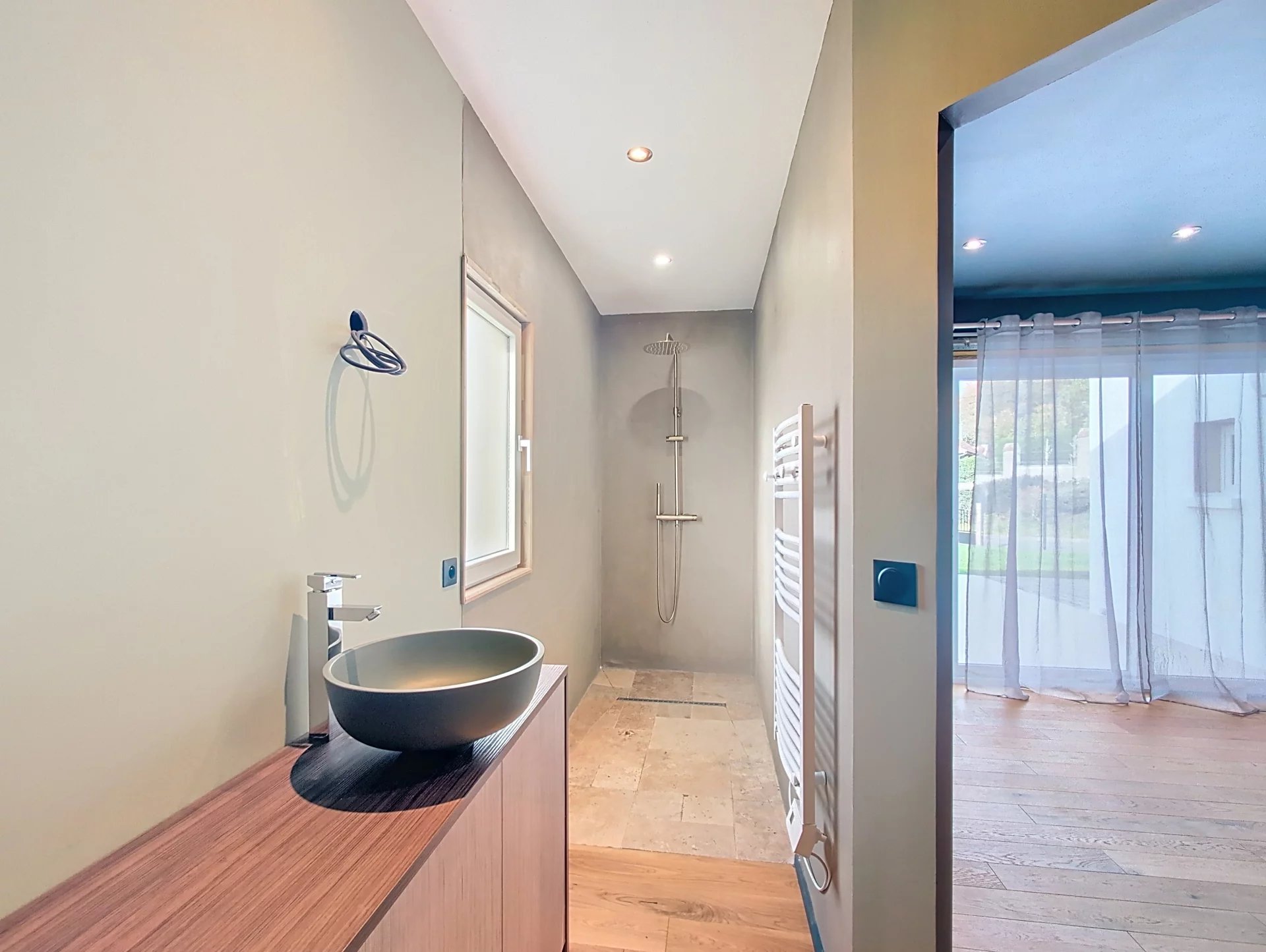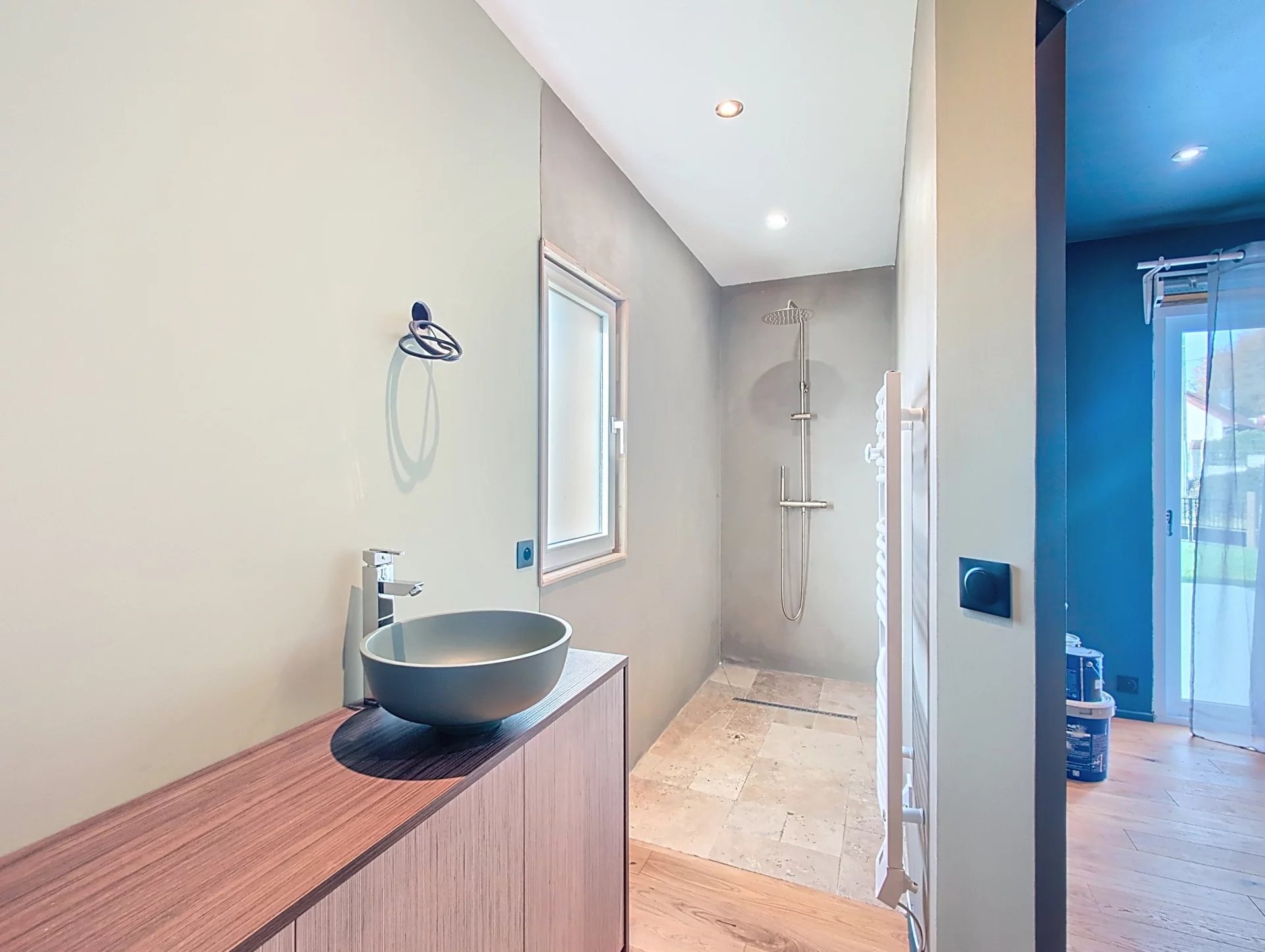 Le rez-de-chaussée comprend également une suite parentale de 25 m² avec salle d’eau et dressing, ainsi qu’un WC.