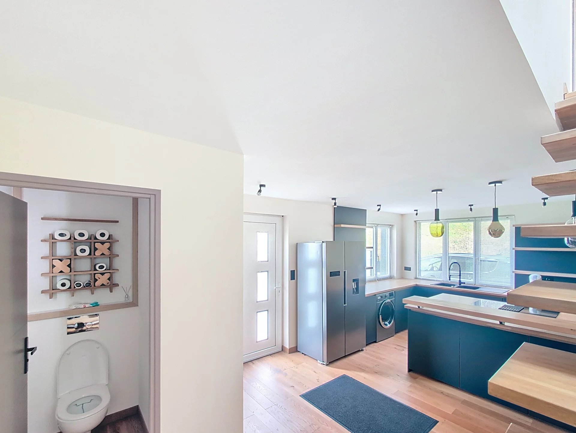 Vous serez séduit dès l’entrée par une pièce de vie lumineuse et conviviale, ouverte sur une cuisine neuve équipée, idéale pour recevoir famille et amis.