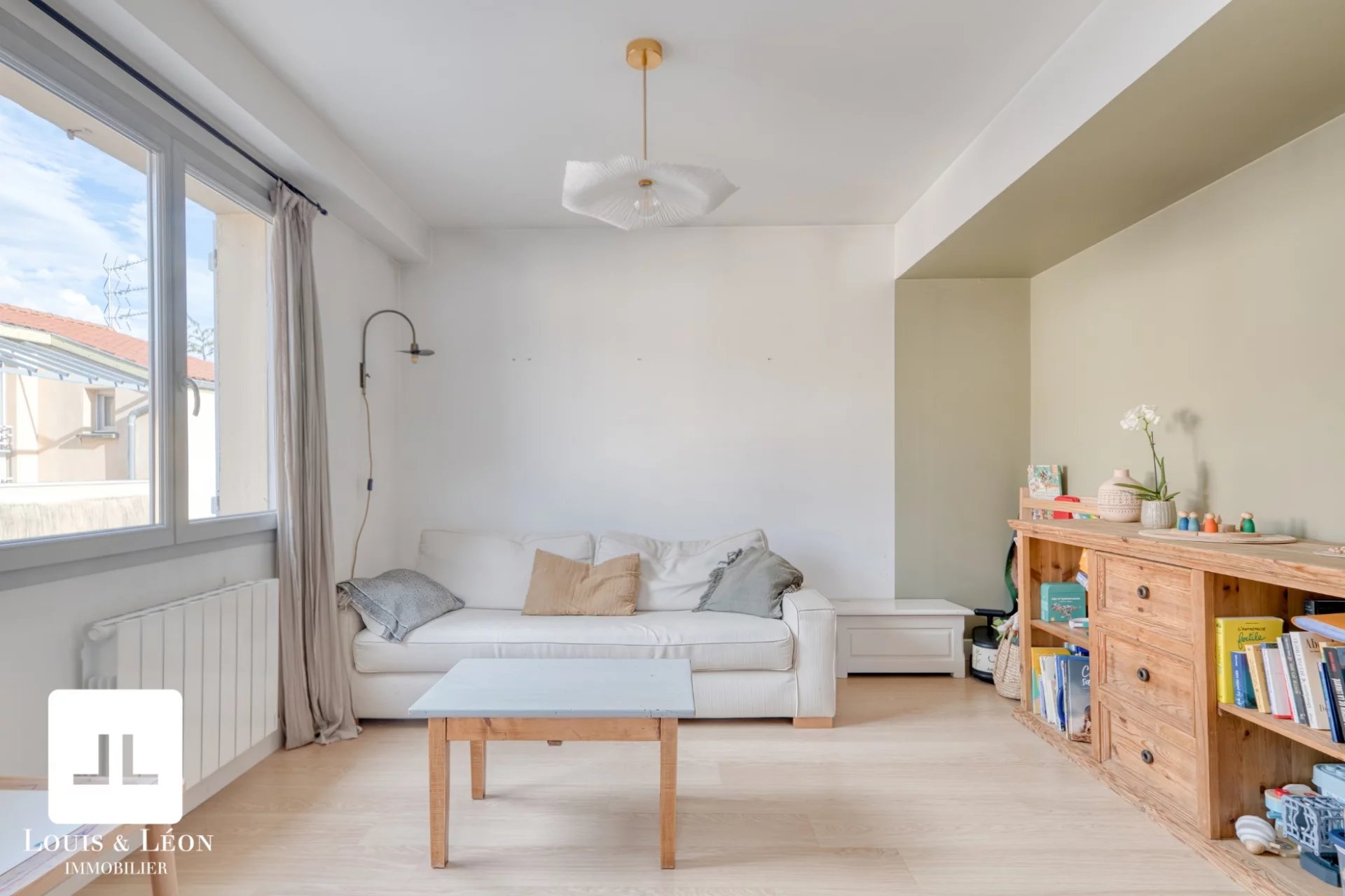 Le séjour avec cuisine ouverte, à la fois moderne et convivial, s’ouvre sur un salon indépendant (pouvant aisément être transformé en 3ᵉ chambre selon vos besoins).