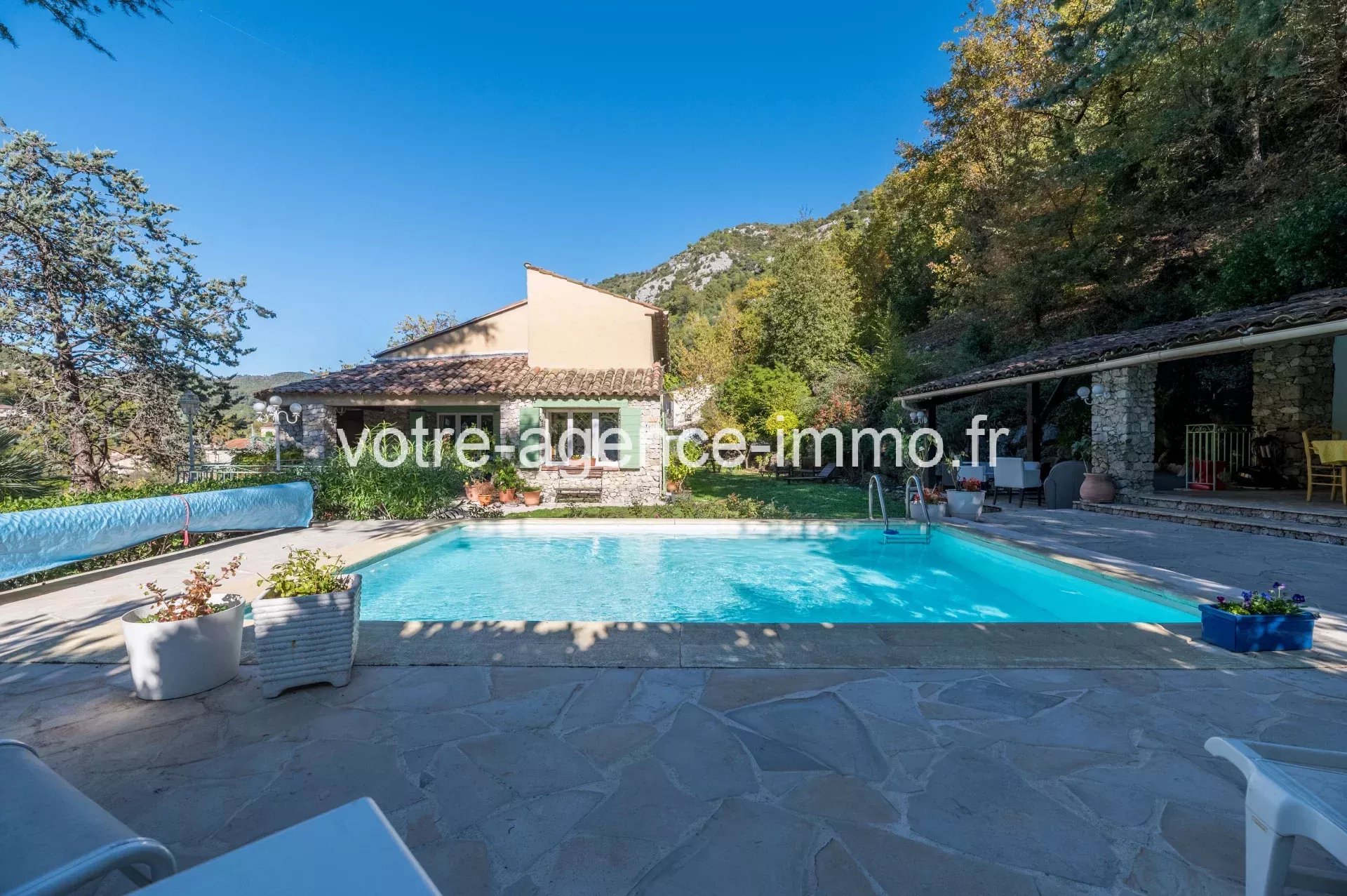 Maison Provençale Tourrette-Levens Maison de charme avec dépendance, piscine et vue nature. Nichée dans un écrin de verdure, cette magnifique villa de 276 m² (227m² habitable) dont un 2 pièces indépendant de 47 m², séduit par son cadre verdoyant, sa luminosité naturelle et ses volumes généreux. Un lieu idéal pour les amoureux du calme et de la nature, à seulement 20 minutes de Nice Est. À l’intérieur, un salon/séjour de 40 m² avec cheminée, ouvert sur une vaste terrasse donnant sur le jardin avec sa piscine, pool house, cuisine d'été. Une cuisine indépendante entièrement équipée, deux chambres (dont une avec accès direct au jardin), une salle de bains et une buanderie. Les amateurs de bien-être apprécieront également le sauna et l’atelier aménagé. À l’étage, la suite parentale séduit par son espace généreux et son atmosphère intimiste : salle d’eau privative, toilette séparée, coin lecture, cheminée et terrasse avec vue dégagée sur la nature. De plain-pied, un appartement indépendant de 47 m² (pouvant accueillir jusqu’à 4 personnes) offre une chambre, un salon, une cuisine américaine équipée, une salle d’eau et sa terrasse privée, parfait pour recevoir vos invités ou rentabiliser en location saisonnière. Le tout repose sur un terrain clos de 2 243 m² avec portail électrique, garage de 30 m², abri voiture et plusieurs places de stationnement. Côté transport, la maison est desservie par les lignes de bus. À DÉCOUVRIR SANS TARDER ! les informations sur les risques auxquels ce bien est exposé sont disponibles sur georisques.gouv.fr