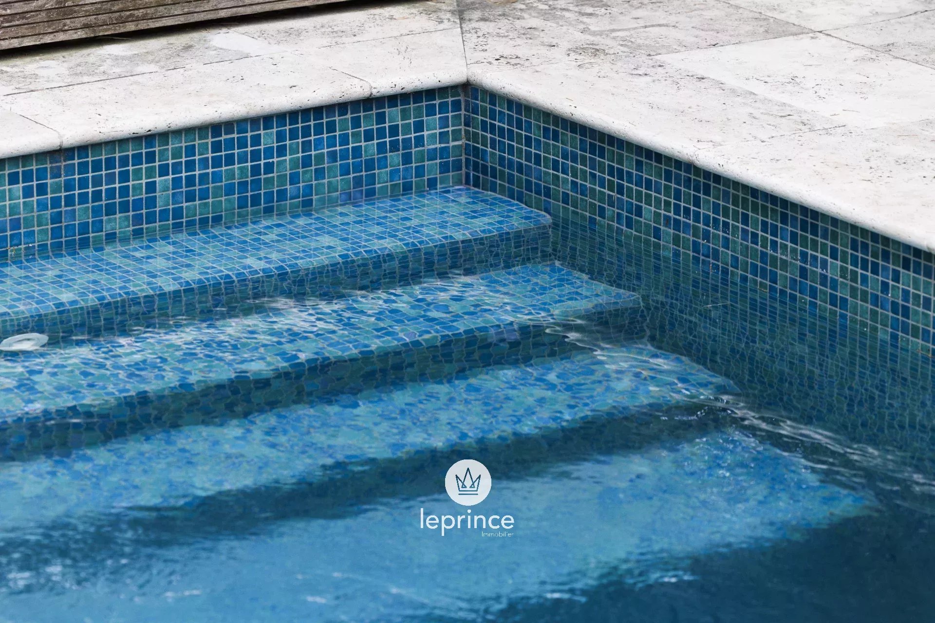 Bella villa moderna progettata dall'architetto con una superficie totale di 290 m2 su un terreno pianeggiante di 600 m2 con piscina, circondato da terrazze alberate.