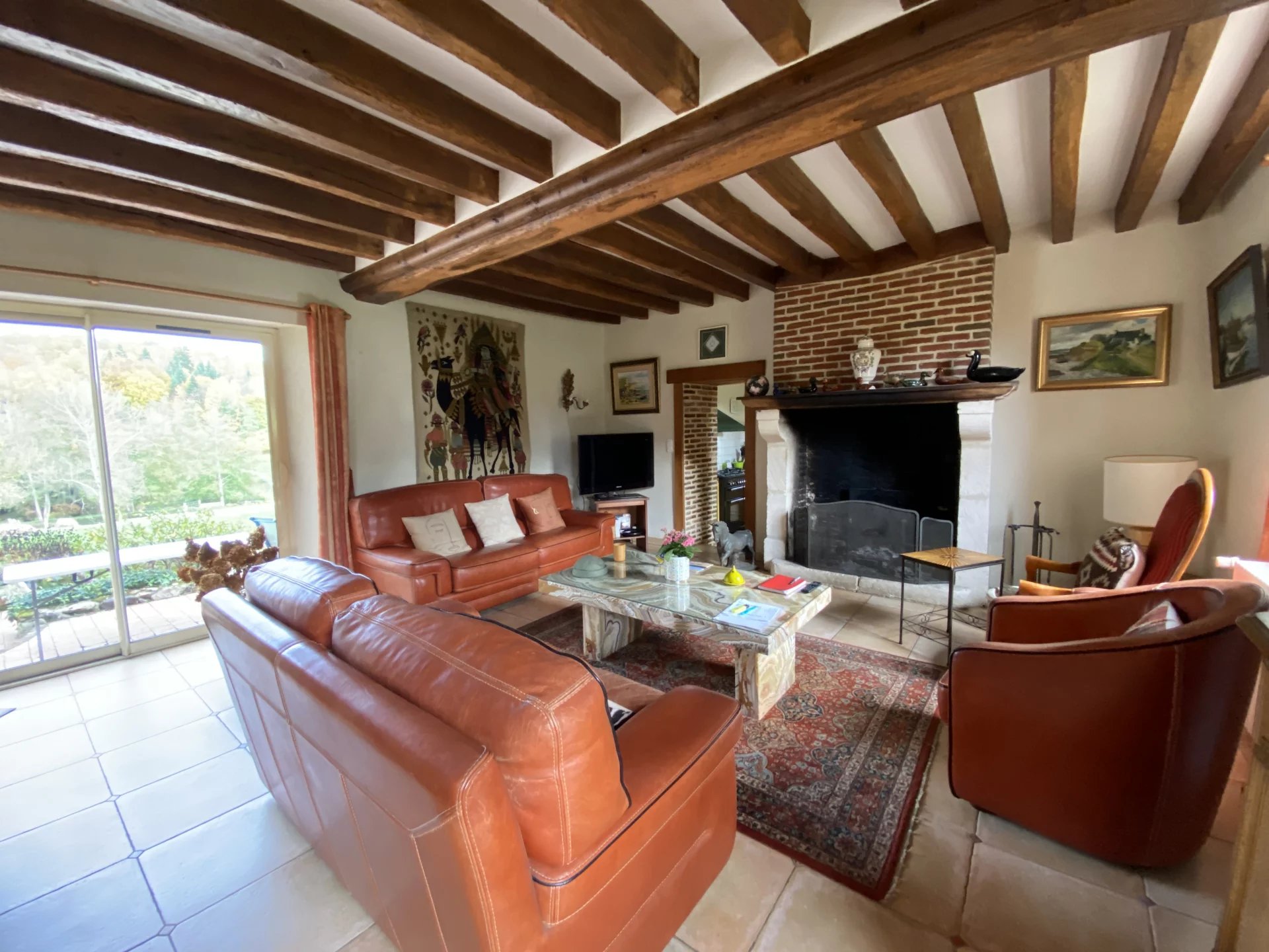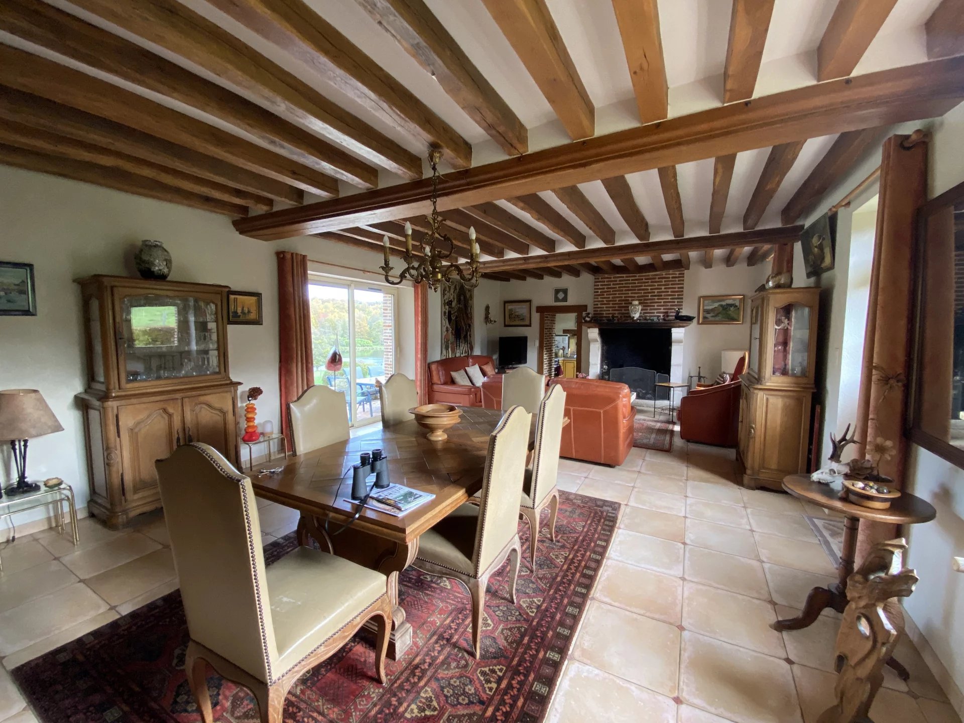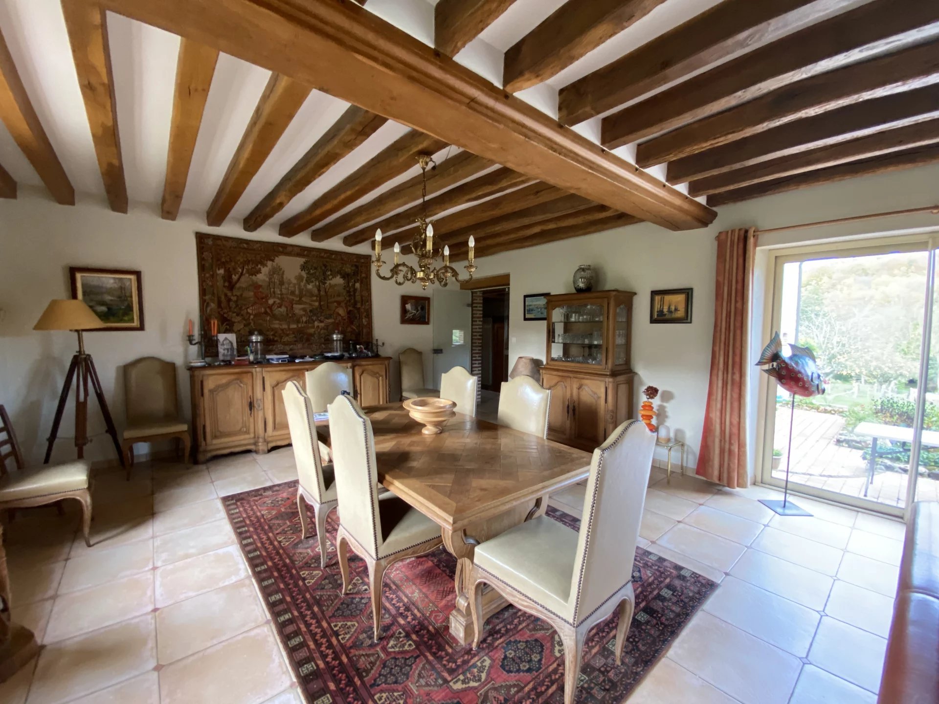 A seulement 10 kilomètres de Mortagne-au-Perche, dans un environnement unique et bucolique, propriété comprenant une maison ancienne (19ème) totalement restaurée avec goût et matériaux de qualité offrant sur 330 m² et deux étages: au rez-de-chaussée, un vaste salon-salle à manger avec cheminée et accès à une terrasse avec vue panoramique sur le parc et l'étang, une cuisine indépendante, équipée et dînatoire, une grande entrée, une suite parentale avec salle d'eau et wc, une lingerie chaufferie; à l'étage, une vaste pièce servant de bureau et salle de billard avec vue sur la nature, un couloir desservant deux chambres et deux salles d'eau, un wc. Attenant à la maison principale, un gîte ou appartement avec accès indépendant offrant sur 40 m², au rez-de-chaussée, un séjour, une cuisine indépendante et équipée, une buanderie; à l'étage, un palier desservant une grande chambre, une salle de bains-wc. Cette propriété dispose d'une terrasse avec un jacuzzi, d'un parc de 14 hectares parfaitement entretenus avec de nombreux étangs (naturels ou artificiels) dont un de 1.5 hectares, de bois, de verger, d'un espace aménagé avec un mobile home servant d'appartement (au calme et avec vue sur plusieurs étangs). Le site est idyllique et offre de nombreuses potentialités (activité de gîte...). Dépendances avec un grand garage et un espace bergerie, une belle cave à vin. A proximité de toutes les commodités. Rare!