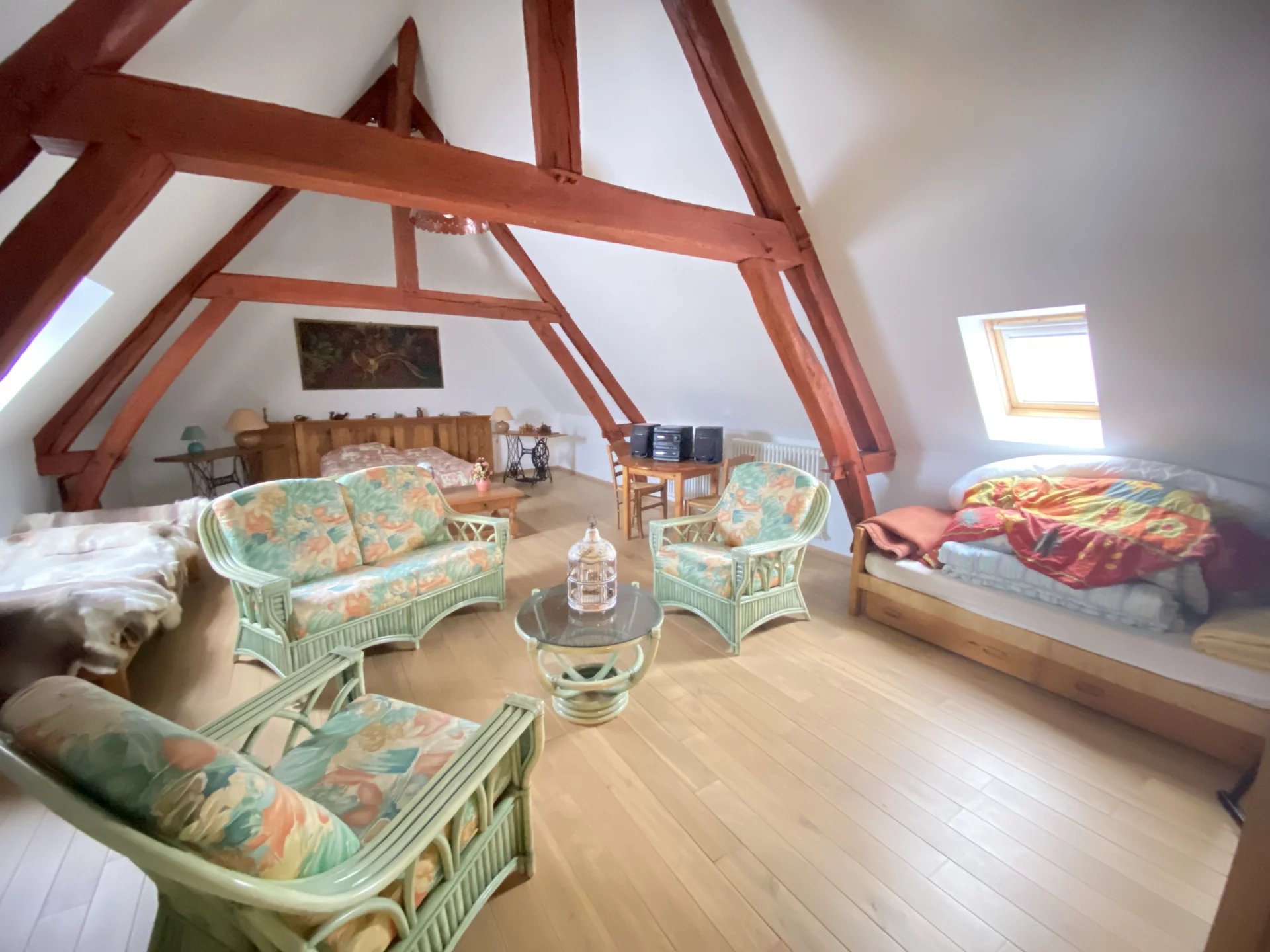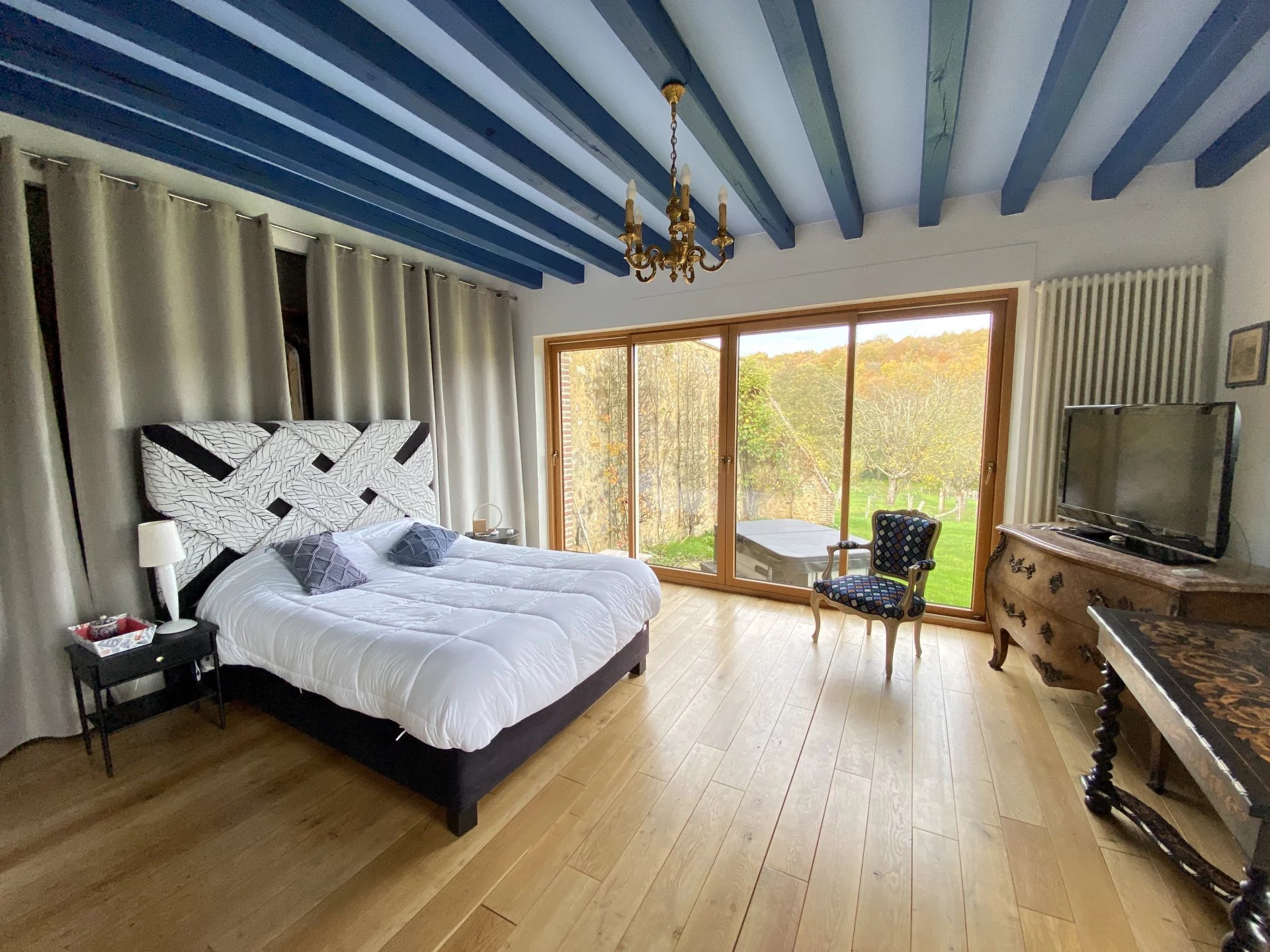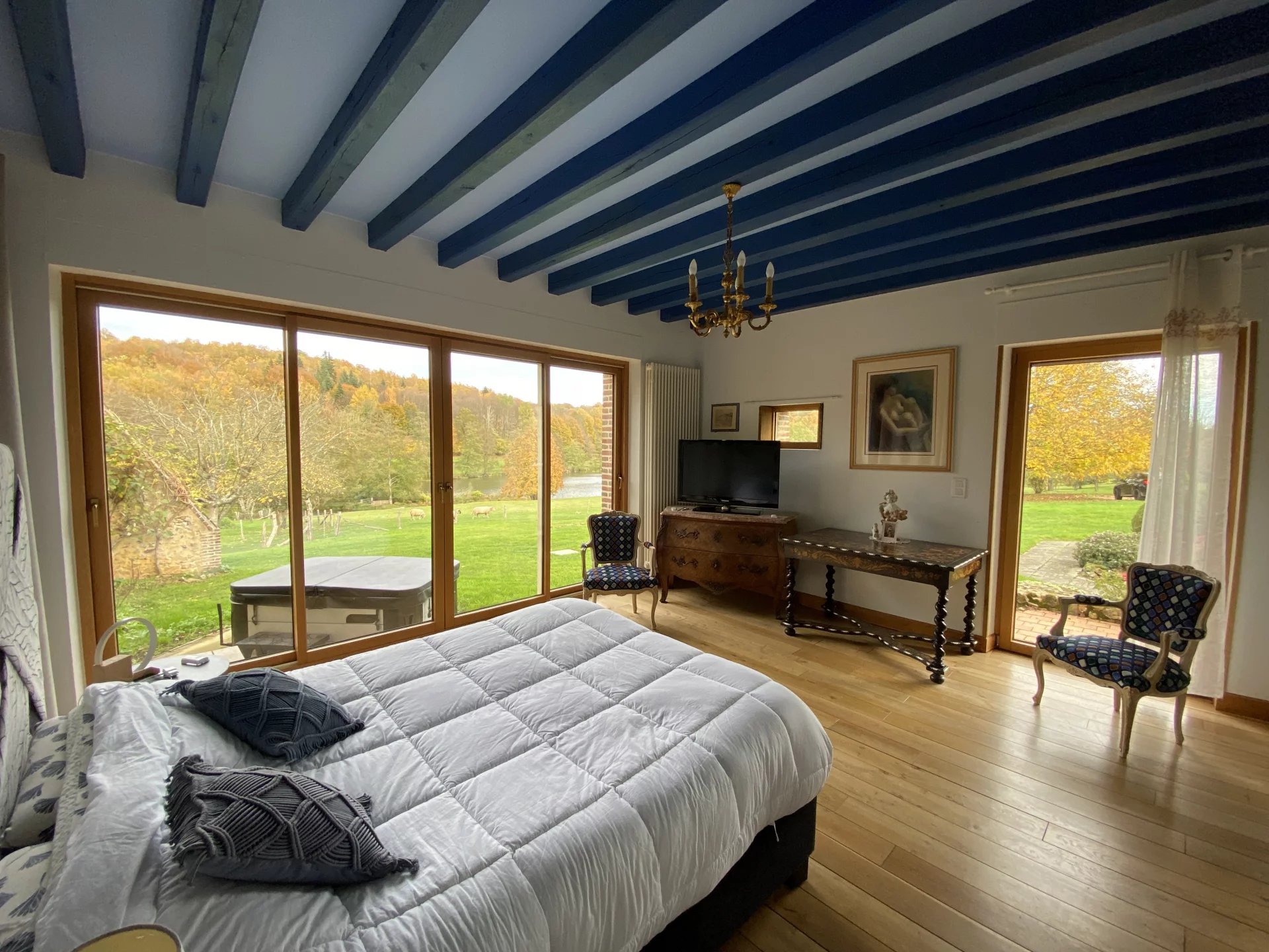 A seulement 10 kilomètres de Mortagne-au-Perche, dans un environnement unique et bucolique, propriété comprenant une maison ancienne (19ème) totalement restaurée avec goût et matériaux de qualité offrant sur 330 m² et deux étages: au rez-de-chaussée, un vaste salon-salle à manger avec cheminée et accès à une terrasse avec vue panoramique sur le parc et l'étang, une cuisine indépendante, équipée et dînatoire, une grande entrée, une suite parentale avec salle d'eau et wc, une lingerie chaufferie; à l'étage, une vaste pièce servant de bureau et salle de billard avec vue sur la nature, un couloir desservant deux chambres et deux salles d'eau, un wc. Attenant à la maison principale, un gîte ou appartement avec accès indépendant offrant sur 40 m², au rez-de-chaussée, un séjour, une cuisine indépendante et équipée, une buanderie; à l'étage, un palier desservant une grande chambre, une salle de bains-wc. Cette propriété dispose d'une terrasse avec un jacuzzi, d'un parc de 14 hectares parfaitement entretenus avec de nombreux étangs (naturels ou artificiels) dont un de 1.5 hectares, de bois, de verger, d'un espace aménagé avec un mobile home servant d'appartement (au calme et avec vue sur plusieurs étangs). Le site est idyllique et offre de nombreuses potentialités (activité de gîte...). Dépendances avec un grand garage et un espace bergerie, une belle cave à vin. A proximité de toutes les commodités. Rare!