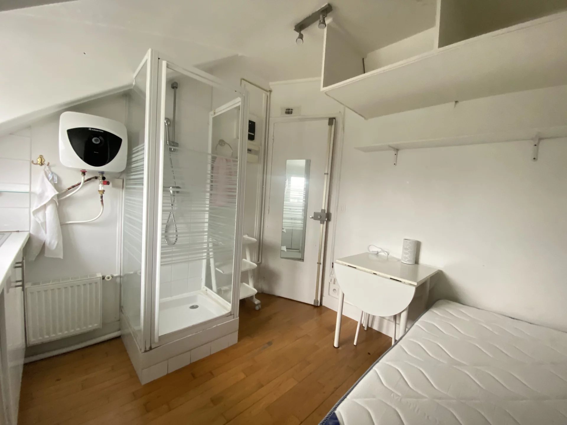 Avenue Frédéric Le Play - A deux pas du Champ de Mars et de l’Ecole Militaire, au 8 étage d'un immeuble Haussmannien très bien entretenu, (asc jusqu'au 7ème étage), très jolie chambre de service optimisée vendue meublée de 8,02 m² au sol et 6,51 m² Loi Carrez comprenant un espace kitchenette, une cabine de douche, rangements (placards, étagères et caissons). Chauffage collectif, double vitrage, wc sur palier, gardienne.