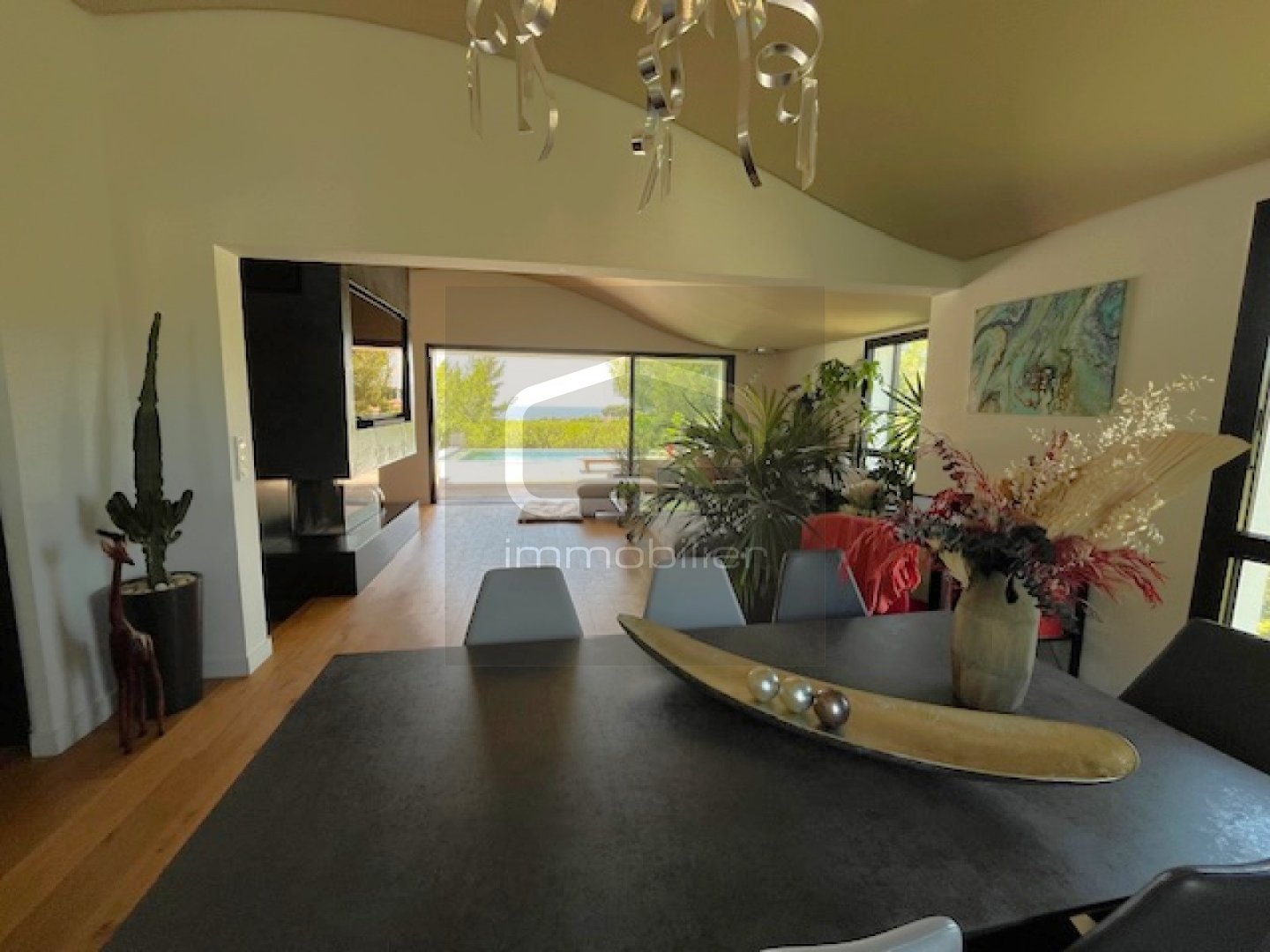 Villa contemporaine d'exception Vue mer panoramique Bandol Dans un secteur résidentiel prisé, découvrez cette somptueuse villa contemporaine offrant une vue mer époustouflante sur la baie de Bandol. De plain-pied, un vaste séjour baigné de lumière avec cheminée et cuisine équipée s'ouvre sur une terrasse en bois et piscine à débordement chauffée. La villa se compose uniquement de 5 suites, dont une superbe master bedroom avec double dressing, salle de bain et vue mer et une suite en plein pieds. Prestations haut de gamme : materiaux nobles et design, domotique, climatisation, larges baies vitrées, cave et stationnement pour plusieurs véhicules. Un bien d'exception, au calme, sans vis-à-vis, à visiter sans tarder. Bandol (83150) 200 m² habitables Terrain 775 m² 5 suites Vue mer Prix : 1 680 000 €
