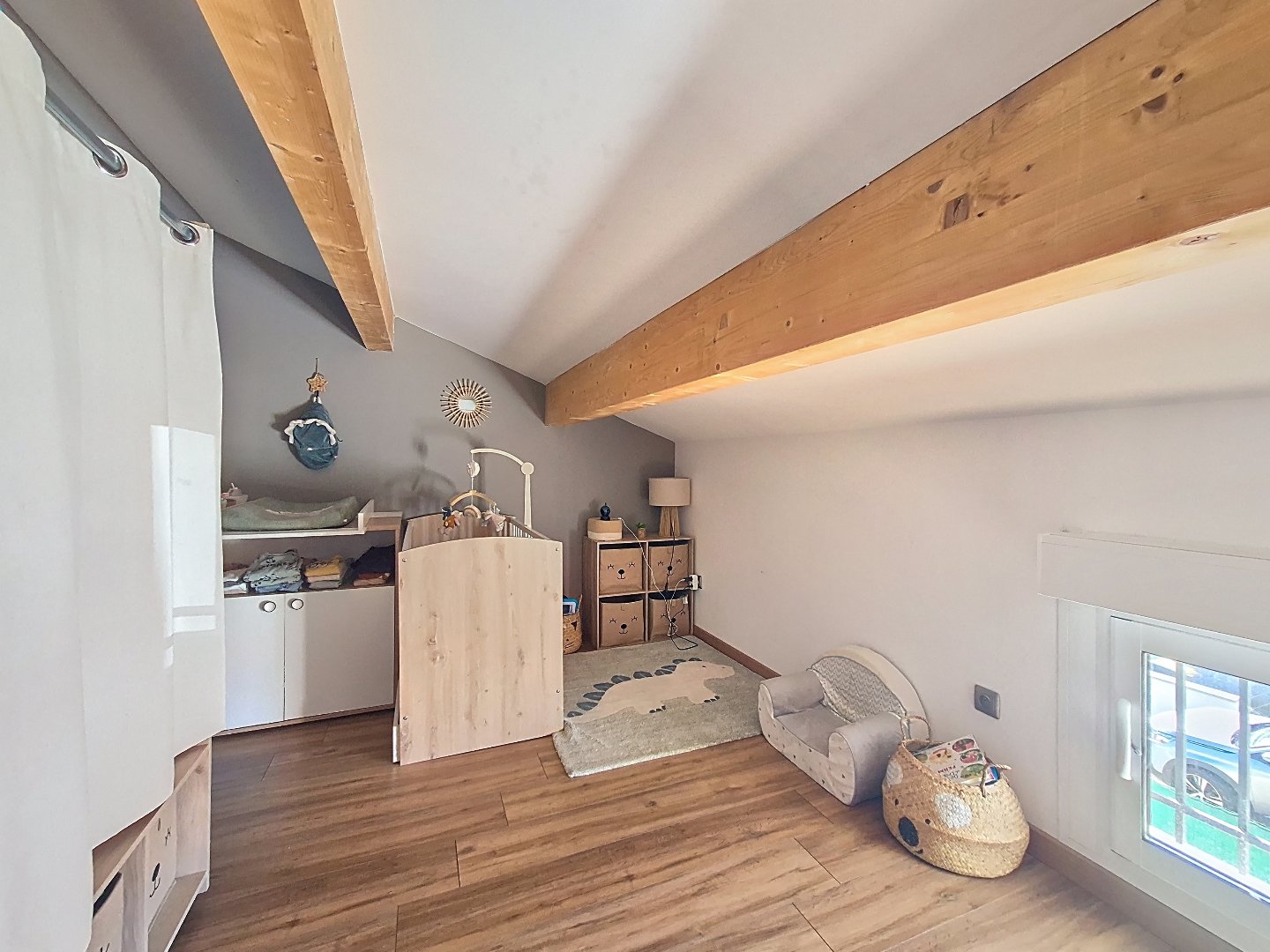 Découvrez cette jolie villa de 2022, au style moderne et épuré, pensée pour offrir confort et fonctionnalité au quotidien. Idéale pour les personnes souhaitant un cadre de vie doux et cocooning. En rez-de-chaussée, vous profitez d'une belle pièce de vie lumineuse avec cuisine ouverte, offrant un espace convivial et chaleureux. Une pièce supplémentaire peut servir de chambre ou de bureau selon vos besoins, ainsi qu'une salle d'eau avec WC. Le garage traversant, avec buanderie aménagée, offre également la possibilité de créer un espace supplémentaire au-dessus, grâce à son plancher béton. À l'étage, deux grandes pièces sous toit permettent d'imaginer coin nuit, espace télétravail ou salle de jeux, complétées par une salle de bain avec WC. La pièce de vie se prolonge sur une terrasse agréable, équipée d'une pergola bioclimatique, parfaite pour profiter des beaux jours. Le terrain de 300 m² est piscinable, un vrai plus pour ceux qui rêvent de détente en extérieur. Une opportunité rare sur le marché : moderne, cosy, fonctionnelle et prête à vivre. À visiter sans attendre ! Ce bien vous est présenté par Emilie et Elodie chez GC Immobilier.