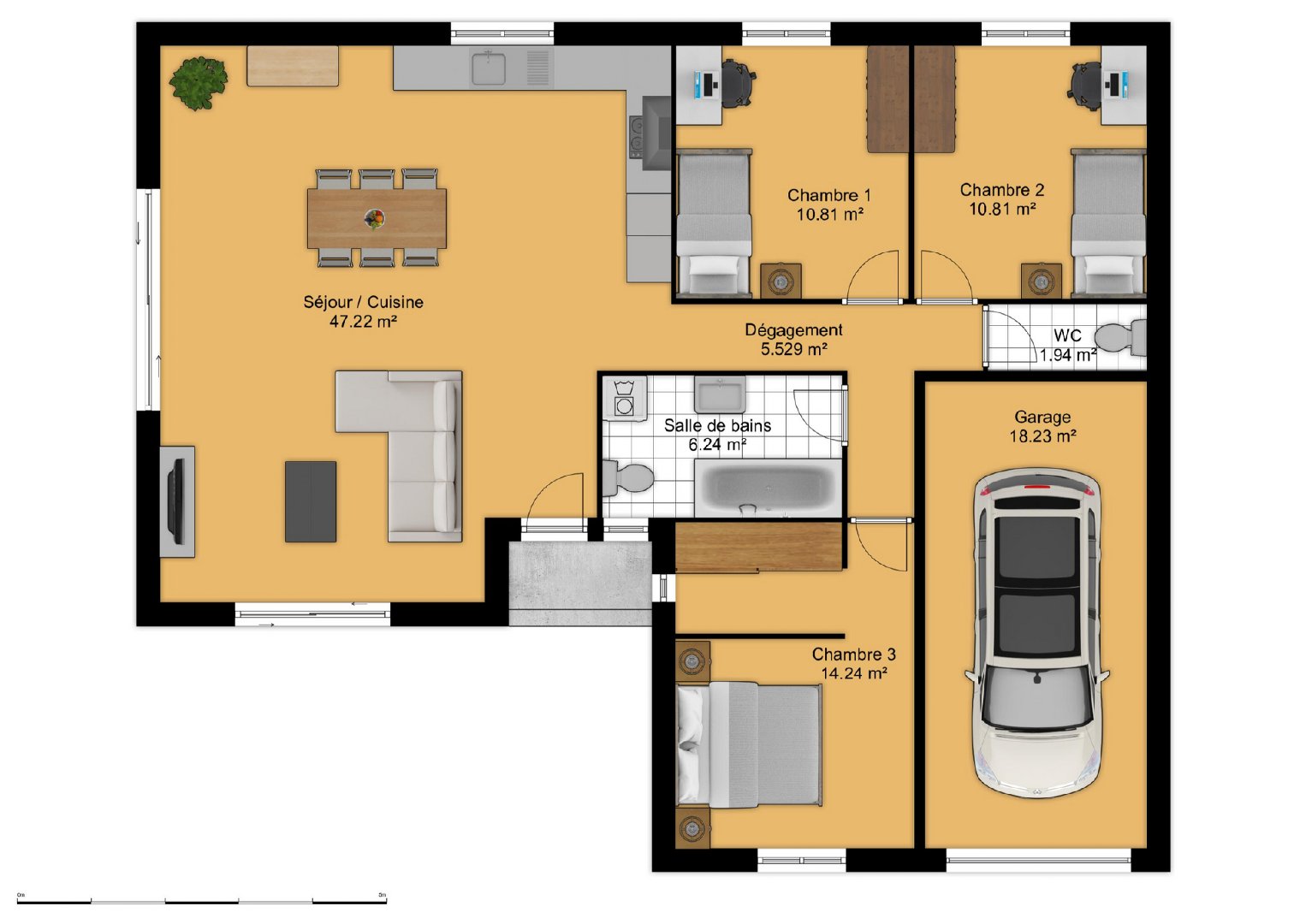 A proximité de Thézan les Béziers, située dans un secteur calme et agréable, venez découvrir cette villa récente de plain-pied, construite en 2021, offrant tout le confort d'une maison moderne et fonctionnelle. D'une surface habitable de 97m², elle se compose d'une belle pièce de vie traversante et lumineuse de près de 50 m², avec cuisine ouverte et baie vitrée à galandage donnant sur le jardin. Côté nuit, vous trouverez trois chambres dont une disposant d'un dressing, une salle d'eau avec douche et baignoire, ainsi qu'un WC indépendant. Le tout est édifié sur un terrain de 368 m², piscinable, agréable et facile à entretenir. Un garage et une place de stationnement complètent ce bien.