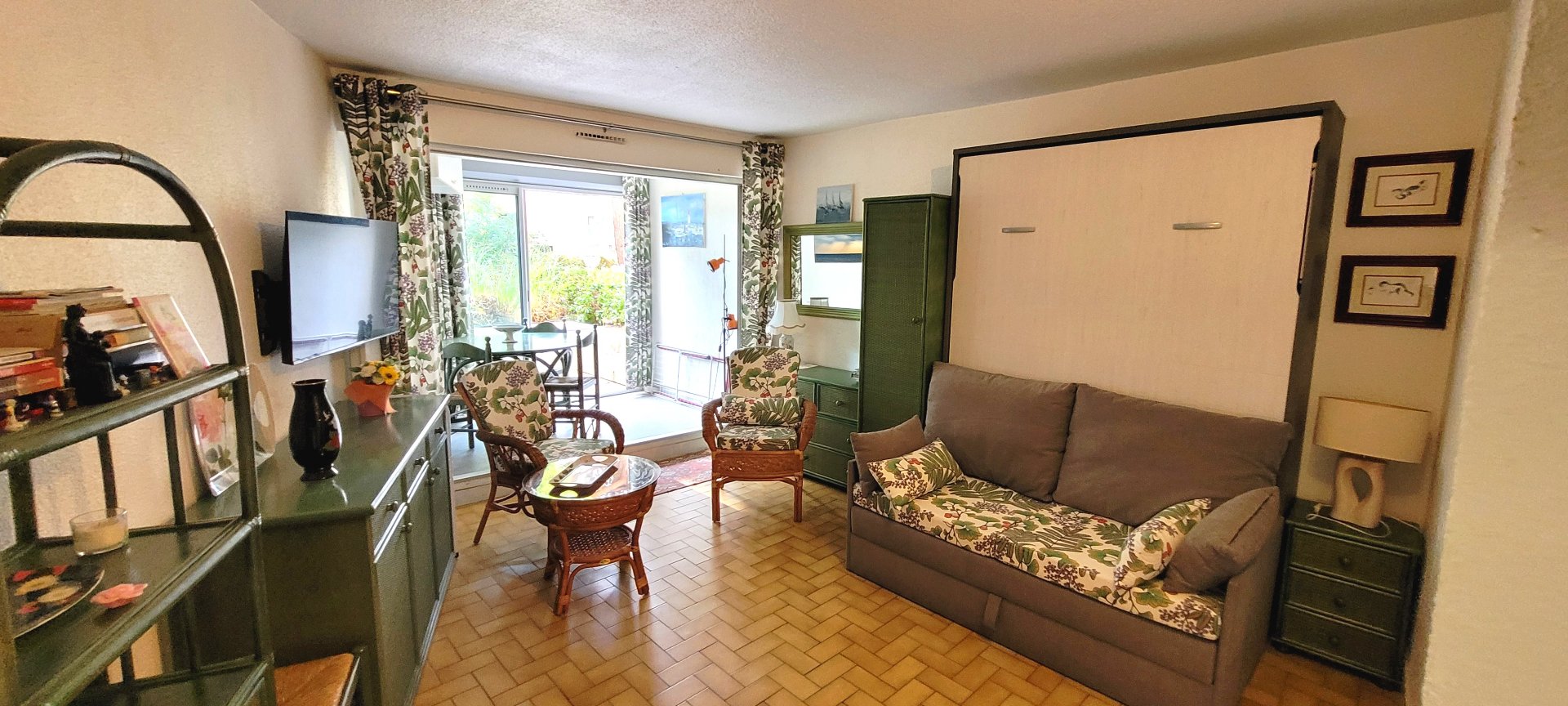 Le Cap d'Agde 34300, Quai Malfato, dans résidence sécurisée avec ascenseur, parc arboré et piscine, appartement de type studio composé : d'une entrée avec placard, une salle d'eau moderne avec w.c, un beau séjour (lit escamotable avec canapé), une cuisine séparée, une loggia intégrée donnant sur une petite terrasse. Vendu Meublé. Inter-Med-Immo34 agence du Cap d'Agde - Plus d'informations sur www.immo-sud.net (réf. 3458245302) Bien soumis au statut juridique de la Copropriété. Nb de lots : 594. Charges annuelles de copropriété (Montant moyen annuel quote-part du budget prévisionnel vendeur) : 996,86 €. Pas de procédure en cours. Surface CARREZ : 22.47 m²