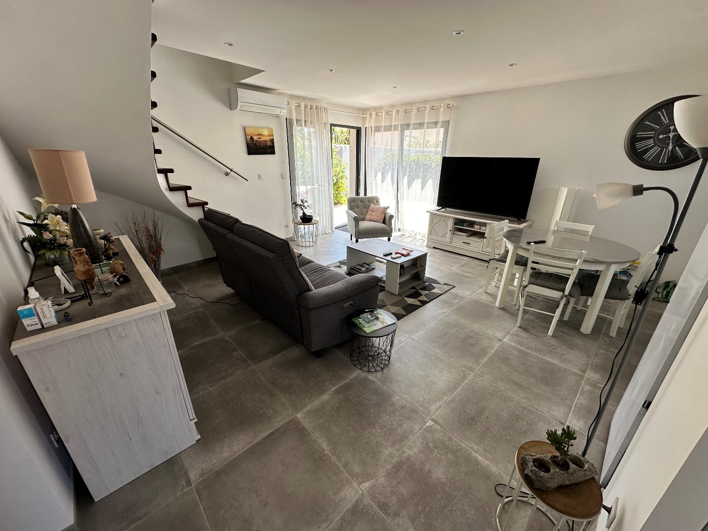 Venez découvrir cette magnifique villa récente de 4 pièces, idéale pour votre projet immobilier. Située à proximité des plages et du centre du village du Grau d'Agde 34300, cette propriété se compose comme suit : Rez-de-chaussée : Espace de vie lumineux avec cuisine ouverte entièrement équipée, offrant un accès direct à la terrasse et au jardin. Une chambre spacieuse avec salle d'eau privative. Un toilette indépendant avec fenêtre. Abri pour voiture et moto, doté d'une porte motorisée. À l'étage : Deux chambres confortables avec placards intégrés. Salle d'eau moderne avec toilette, offrant une lumière naturelle. La villa respecte les normes actuelles (RT2012) et est équipée de prestations de qualité, notamment des salles d'eau aménagées, un chauffe-eau thermodynamique, la climatisation réversible et des volets roulants électriques. De plus, elle est vendue meublée et équipée, et bénéficie d'une assurance dommage ouvrage. N'attendez plus pour visiter cette belle propriété qui allie confort et praticité à quelques pas de la mer ! Prix TTC et Honoraires à charge vendeur TTC Inter-Med-Immo34 Agence du Grau d'Agde - Laurent - - Plus d'informations sur www.immo-sud.net (réf. 3458345460)
