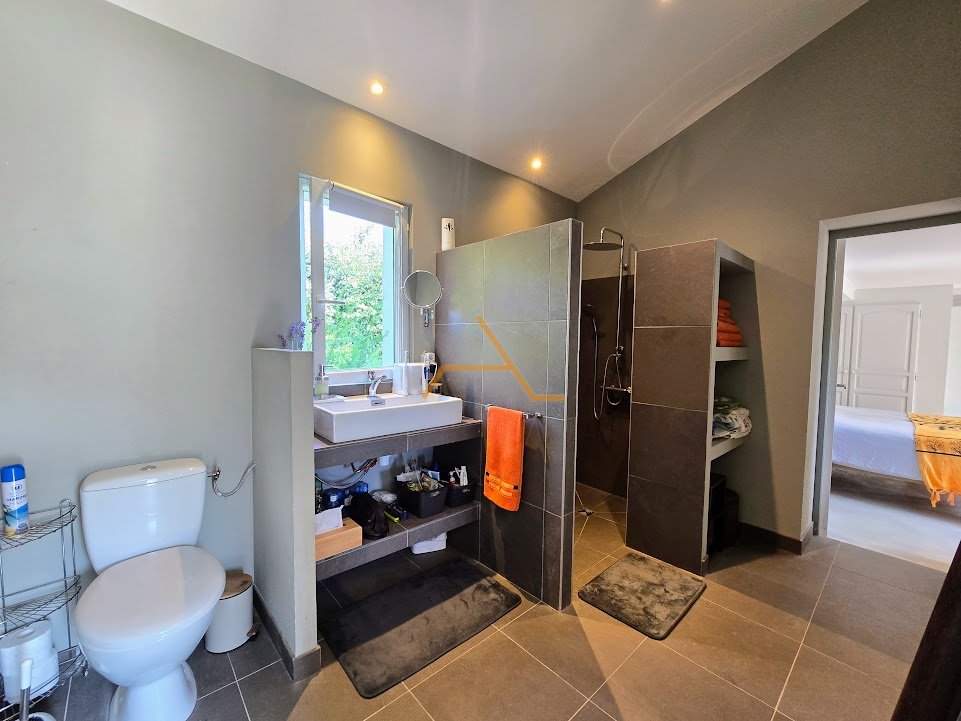 EXCLUSIVITE ! Dans un quartier tranquille à deux pas du centre village avec toutes commodités et commerces, découvrez cette superbe propriété d'une superficie habitable de 187 m² environ dont 12 m² de véranda, implantée sur un parc clos et arboré de 2500 m² avec piscine et superbe vue dégagée sur les colines environnantes. Cette chaleureuse maison se compose au rez-de-chaussée d'une d'entrée en verrière, une belle et lumineuse pièce à vivre de 55 m² environ avec cuisine équipée,une arrière cuisine, un coin repas, une salle à manger aménagée dans la véranda, une bibliothèque en mezzanine, 2 chambres avec chacune leur salle d'eau, un wc indépendant, un bureau, et troisième chambre actuellement aménagée en salle de projection. A l'étage, une chambre suplémentaire avec salle d'eau et wc et une pièce pouvant faire office de dressing ou de chambre d'appoint. Système de chauffage central par pompe à chaleur et des climatisations réversibles en complément. Un double garage et une chaufferie viennent compléter le bien. De belles prestations pour cette propriété sans travaux et d'un entretien irréprochable. Visite virtuelle disponible sur demande. Contactez Stéphane ATIENZA agent commercial ARIENTI IMMOBILIER à La Bégude de Mazenc - RSAC N° 444 082 341 - Plus d'informations sur www.arienti.fr (réf. 5943). Les informations sur les risques auxquels ce bien est exposé sont disponibles sur le site Géorisques: https://www.georisques.gouv.fr/ Les honoraires de transactions sont prises en charge par le vendeur.