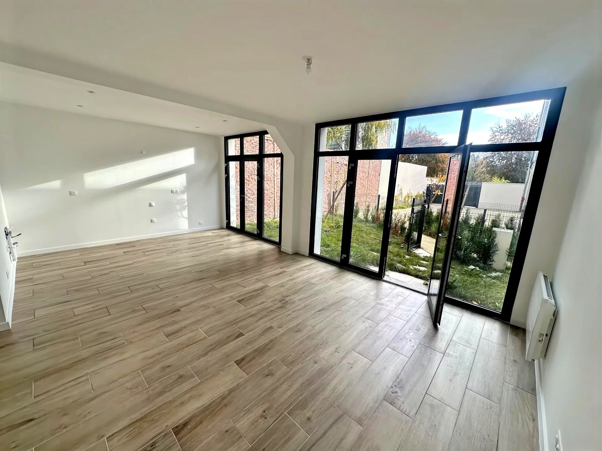 A 3 minutes du RER B LAPLACE, proche commerces, écoles et toutes commodités, Magnifique Maison neuve de 83.8m² Loi Carrez (98.12m² au sol) composée au rez de jardin : d'un vaste séjour très lumineux donnant de plain pied sur un jardin privatif de 35m² au calme, cuisine à aménager, buanderie, wc. A l'étage : 2 chambres, un bureau, salle de bains, wc et combles aménagés. Produit de qualité sur un secteur de 1er ordre !
